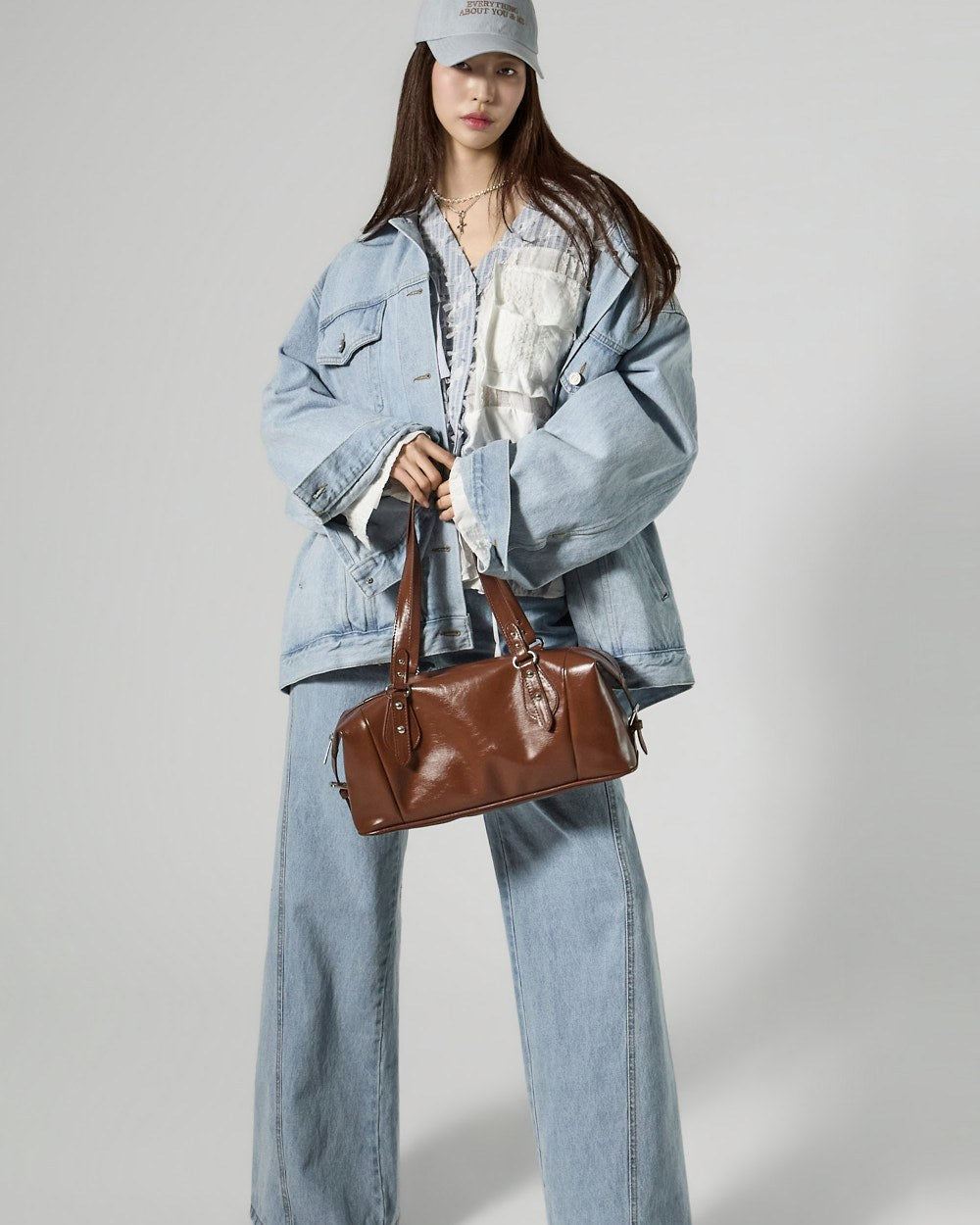 The wide, oversized silhouette offers a relaxed fit,