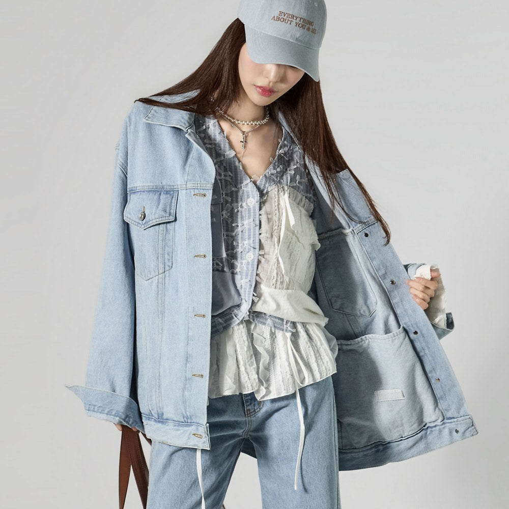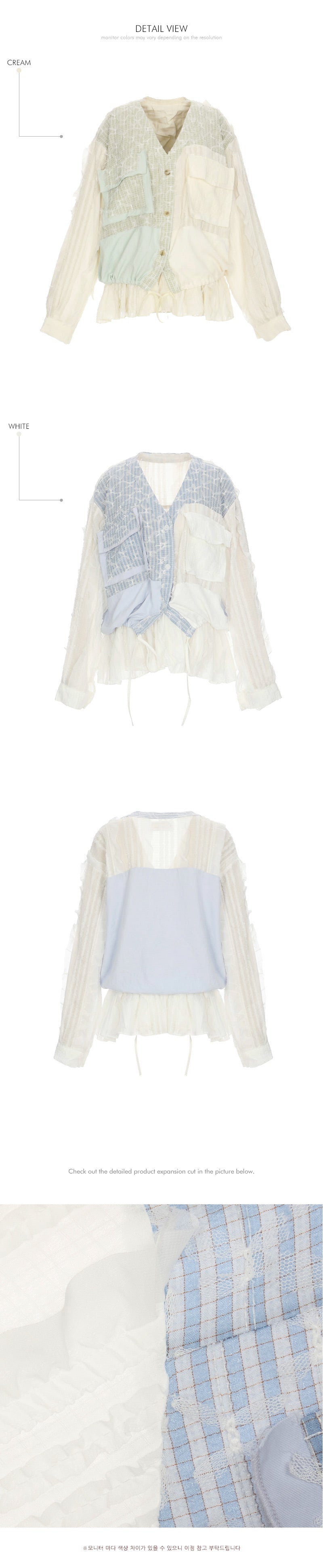 The front button closure and pocket details