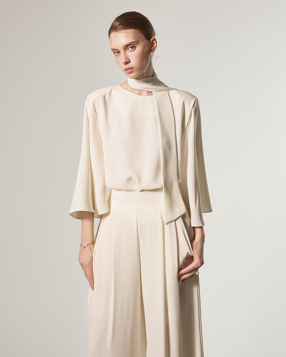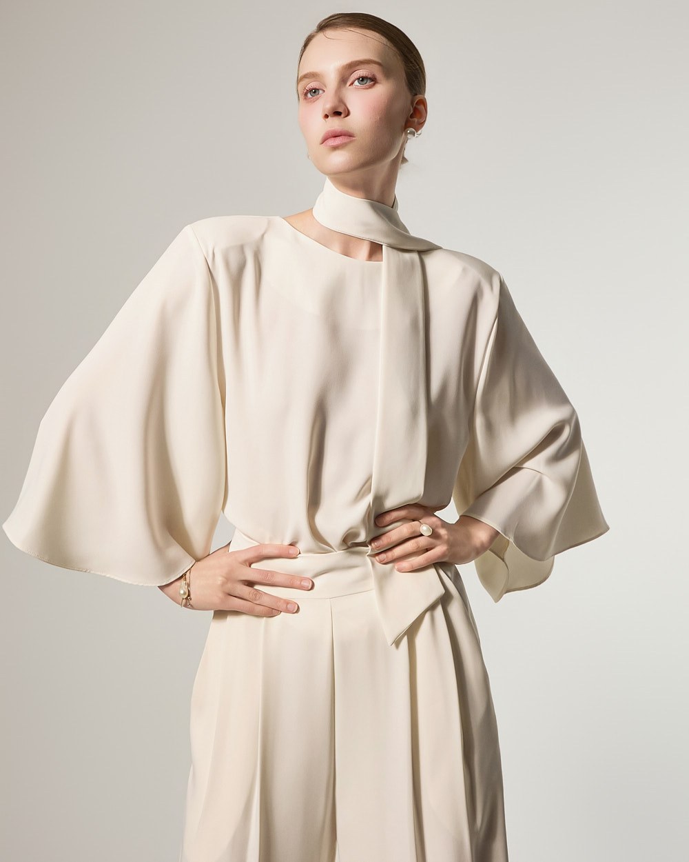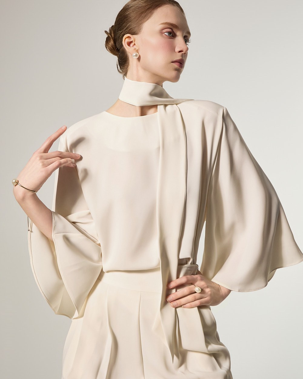 This blouse features an elegant and sophisticated mood.