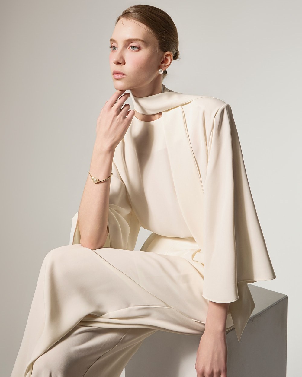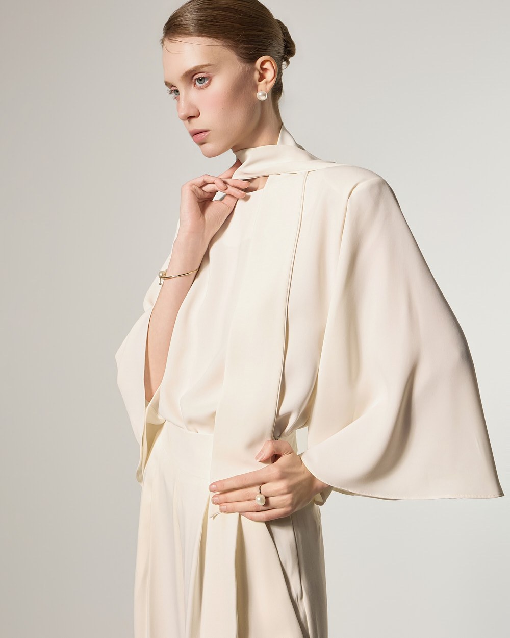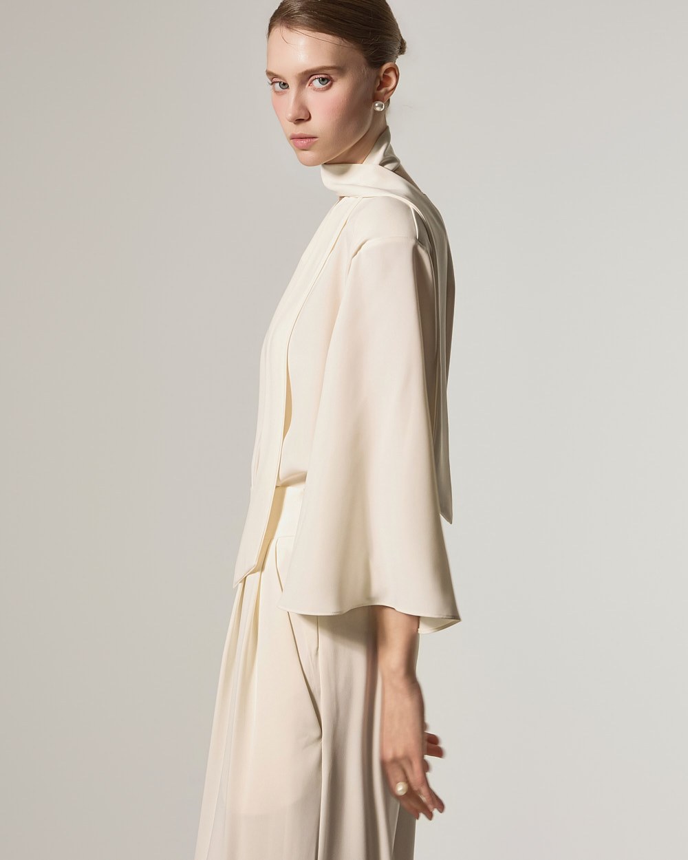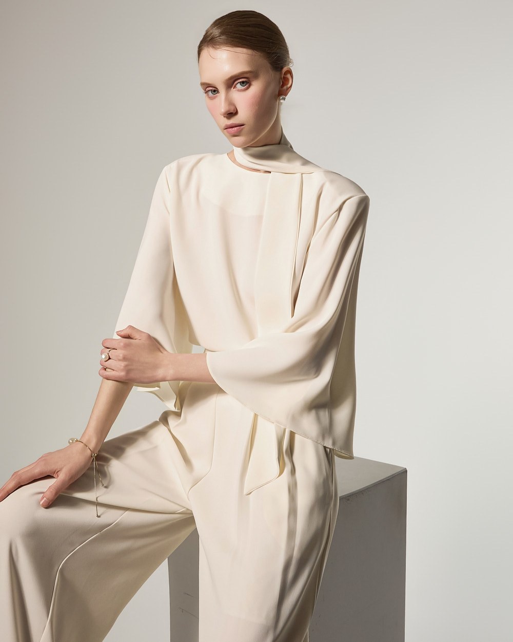 This blouse features an elegant and sophisticated mood.