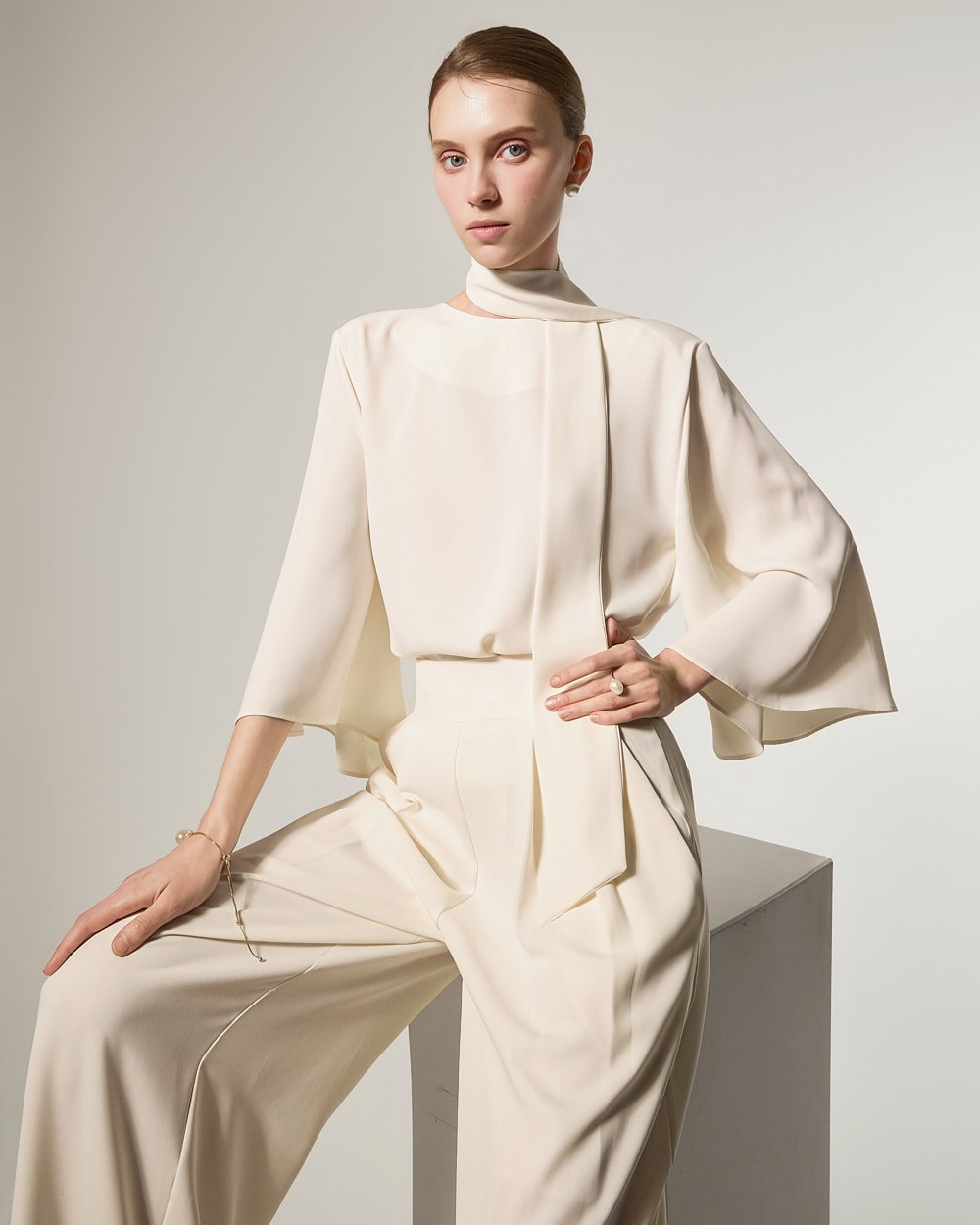 Model 174cm is wearing Size ONE in IVORY color.