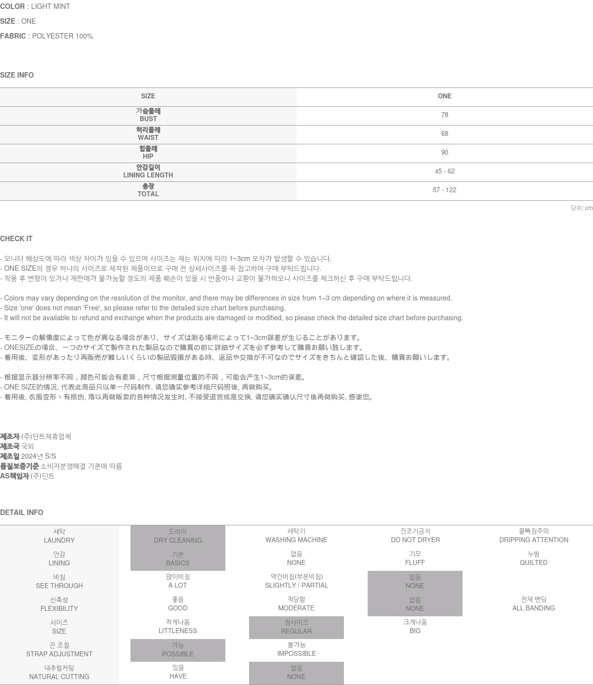 Clothing from DINT Co., Ltd. may become damaged or deformed if machine washed or tumble dried. We strongly recommend following the care instructions provided below.