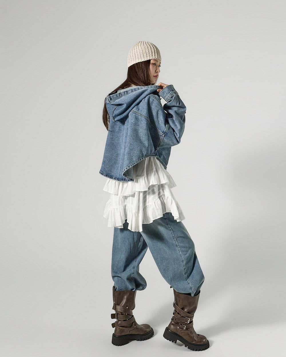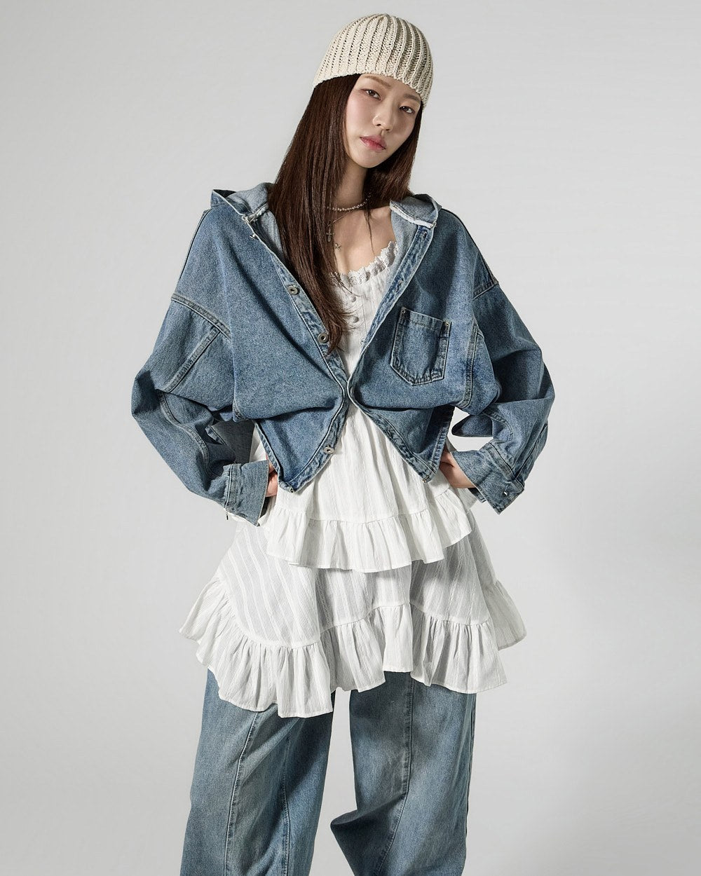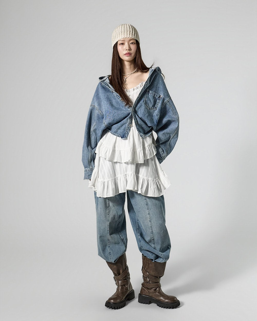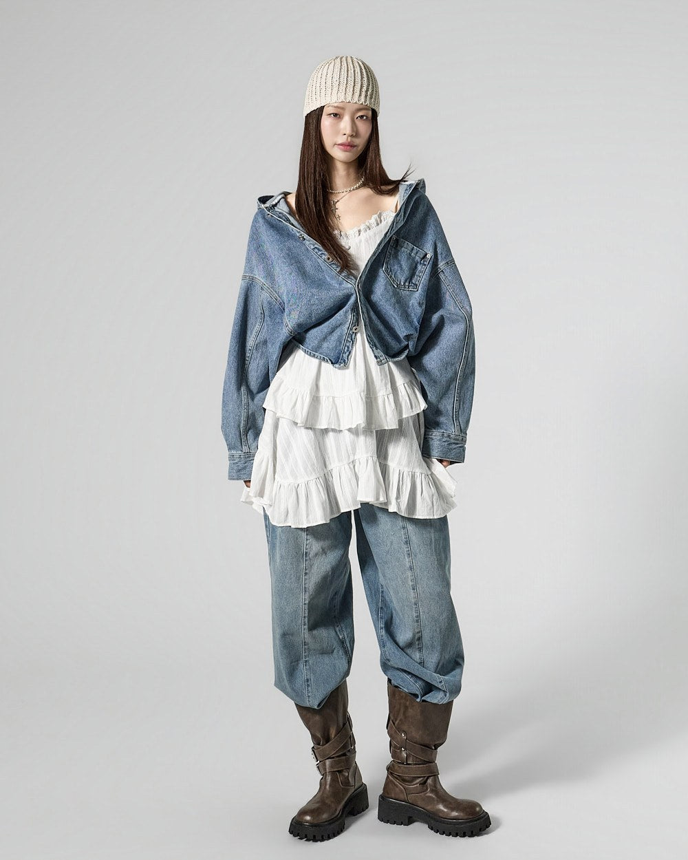 Denim (jeans, coated jeans) and other dark-dyed garments may experience color fading or transfer. Please take extra care before the first wash and while wearing them.