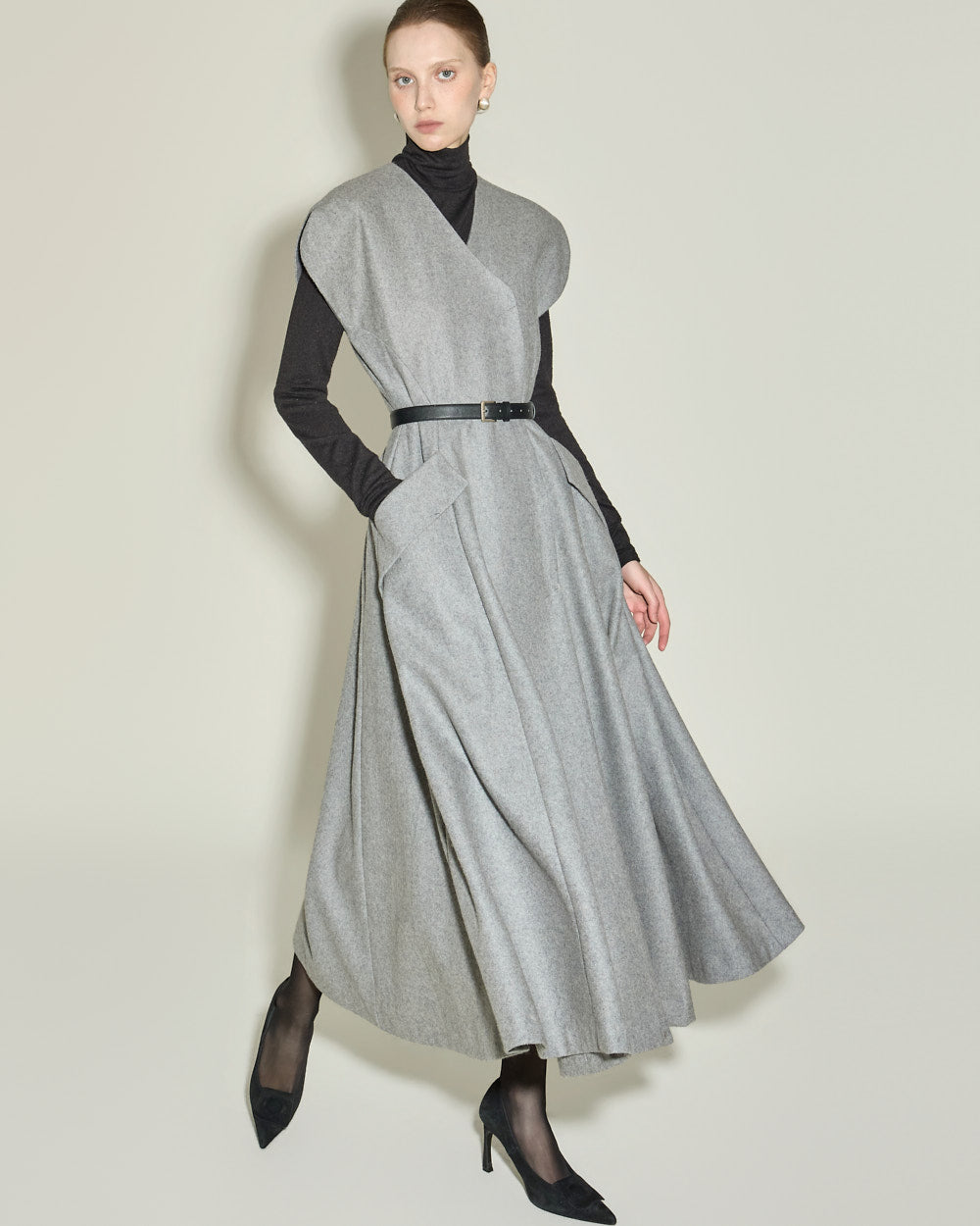 The soft, warm wool fabric combined with a firm drape creates a calm yet sophisticated look.