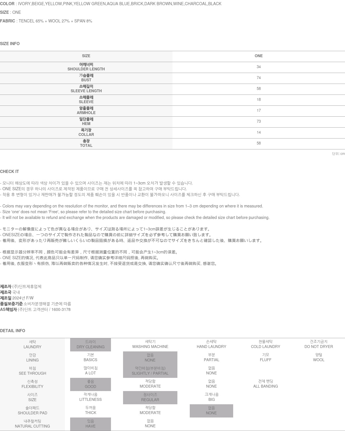 Clothing from DINT Co., Ltd. may become damaged or deformed if machine washed or tumble dried. We strongly recommend following the care instructions provided below.