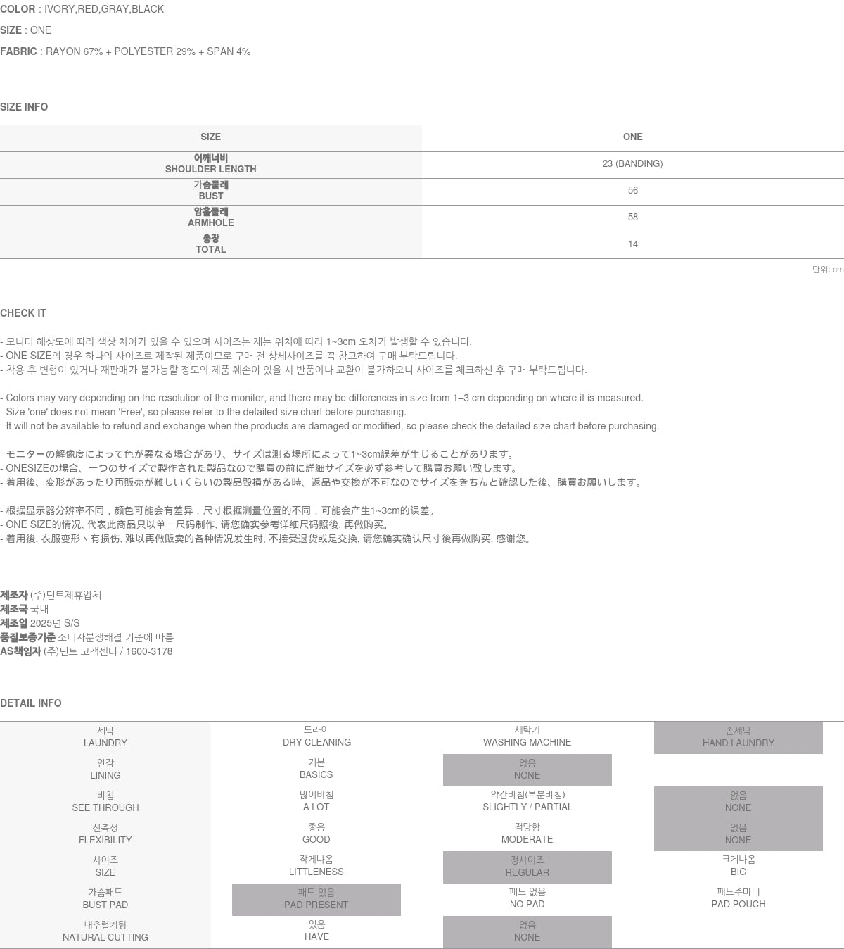 Clothing from DINT Co., Ltd. may become damaged or deformed if machine washed or tumble dried. We strongly recommend following the care instructions provided below.
