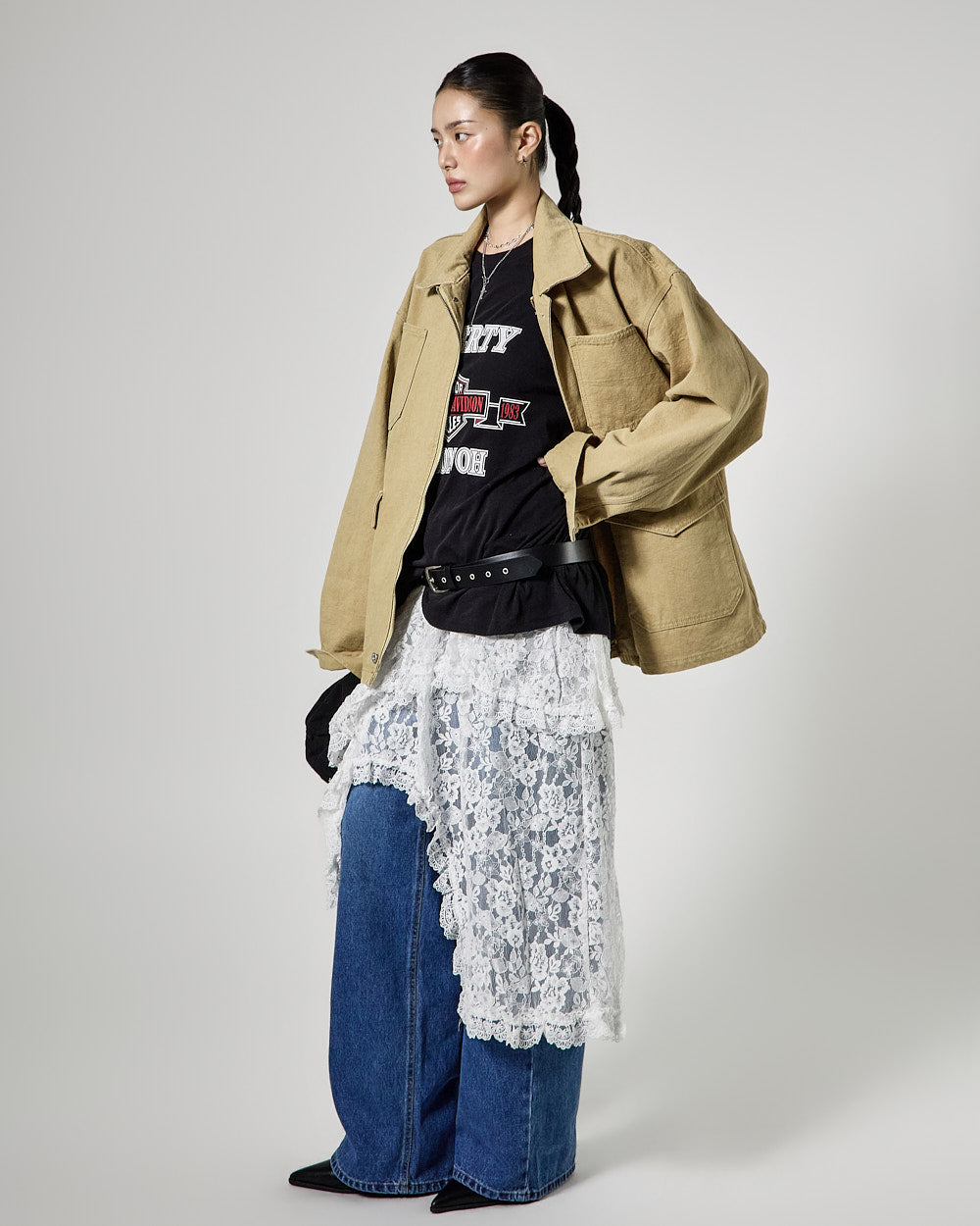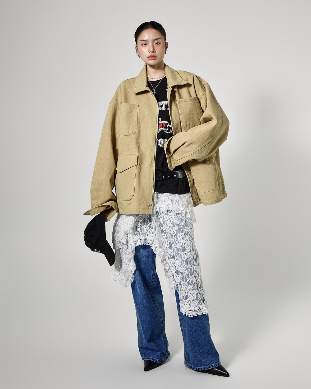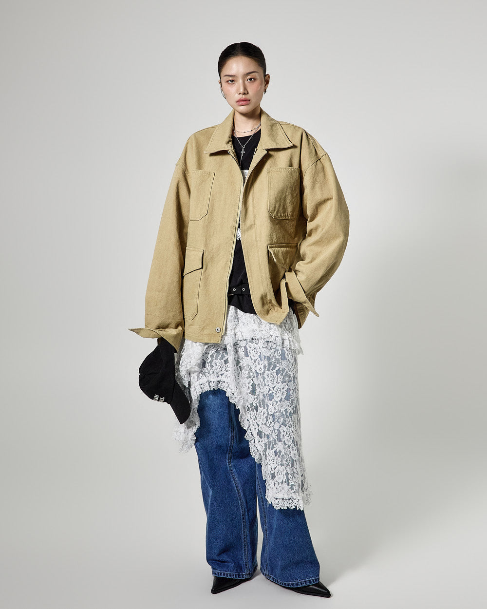 Denim (jeans, coated jeans) and other dark-dyed garments may experience color fading or transfer. Please take extra care before the first wash and while wearing them.