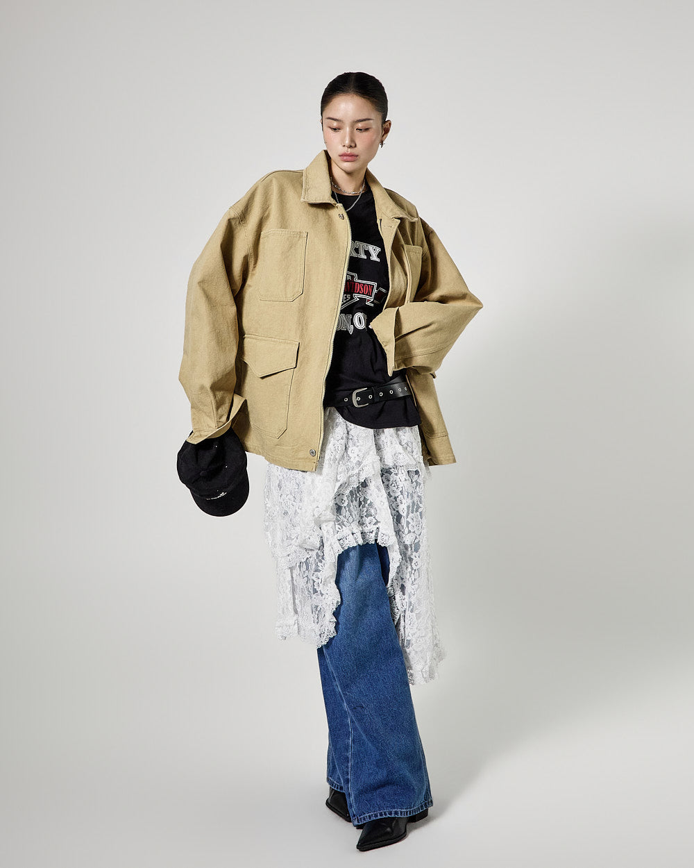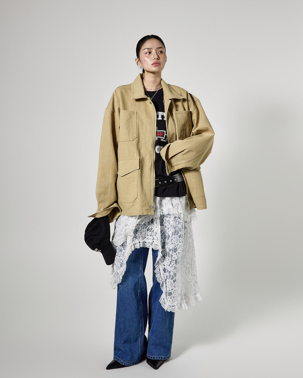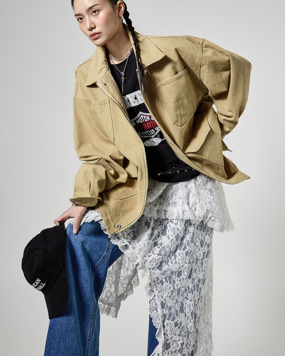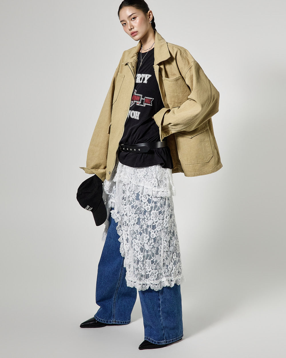 Denim (jeans, coated jeans) and other dark-dyed garments may experience color fading or transfer. Please take extra care before the first wash and while wearing them.