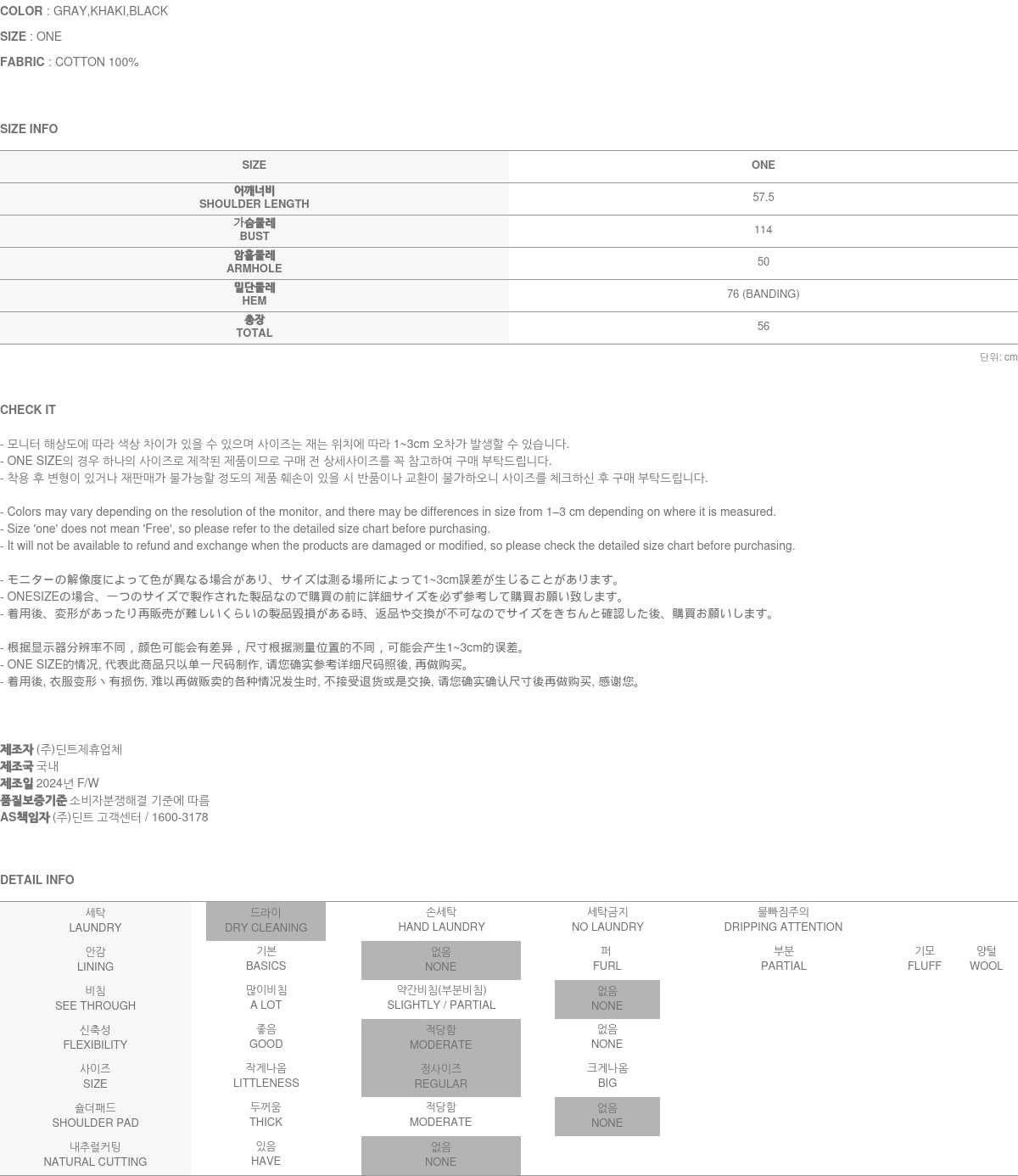 Clothing from DINT Co., Ltd. may become damaged or deformed if machine washed or tumble dried. We strongly recommend following the care instructions provided below.