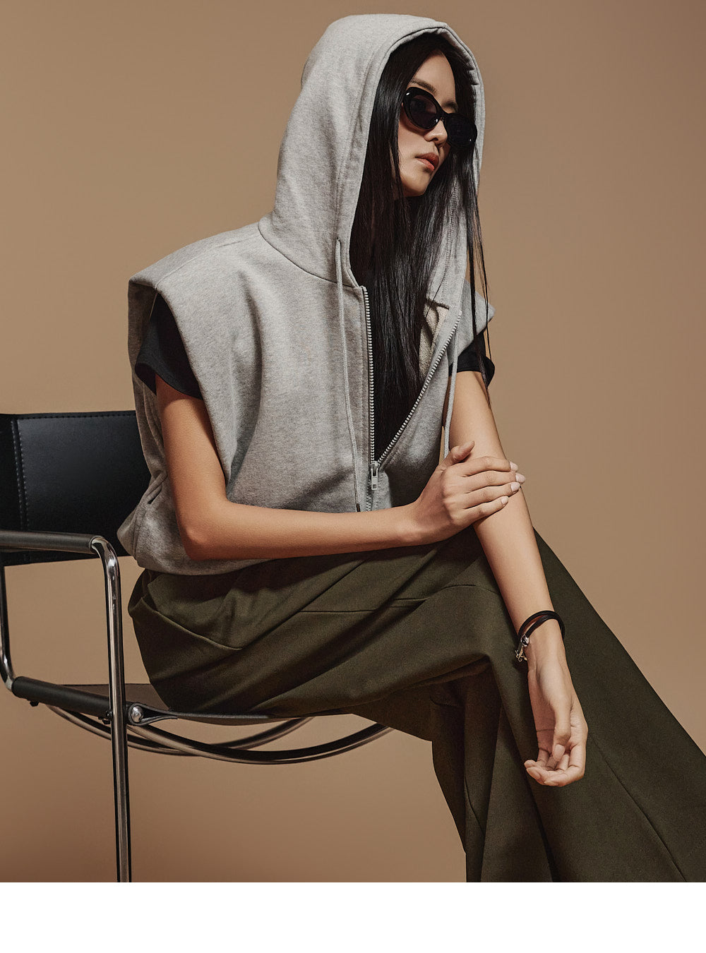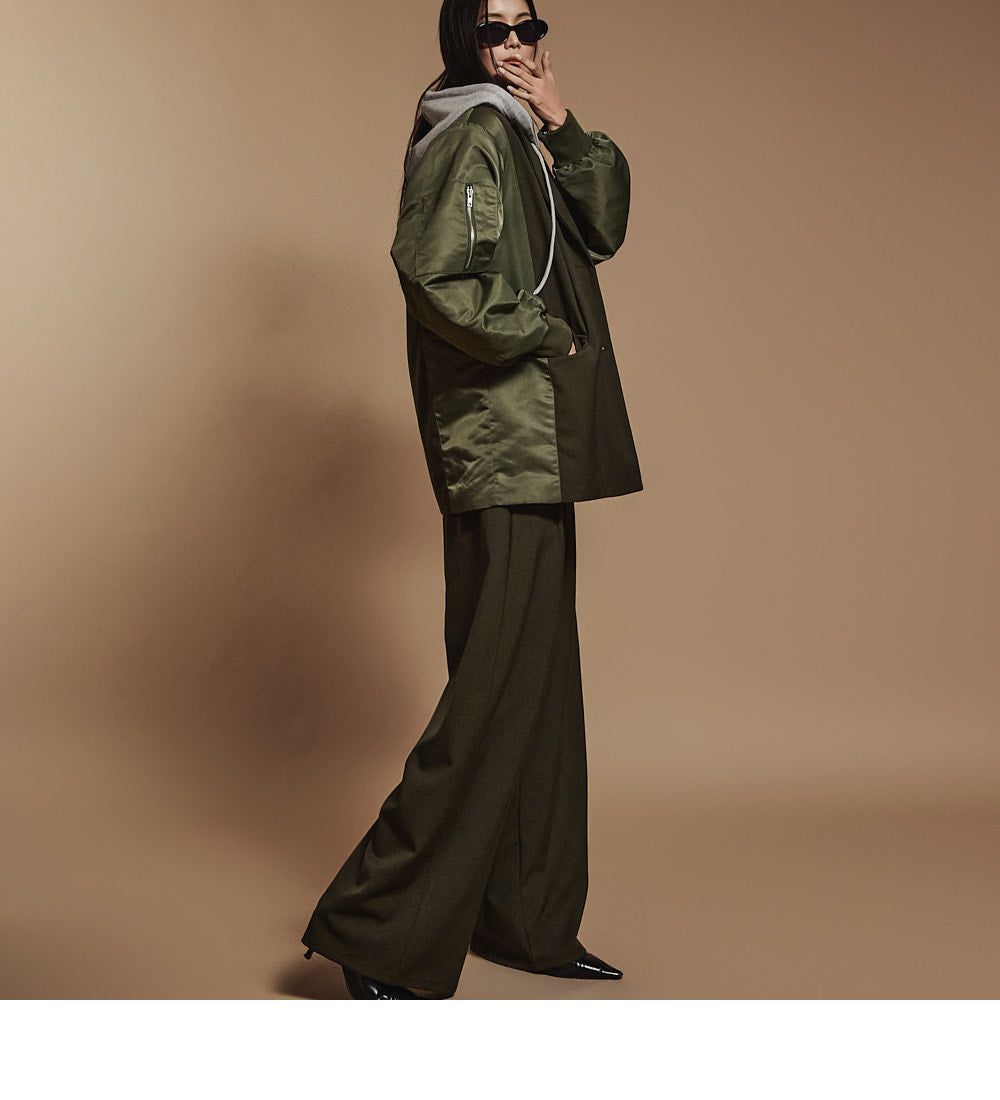 This is a casual mood hooded zip-up jacket.