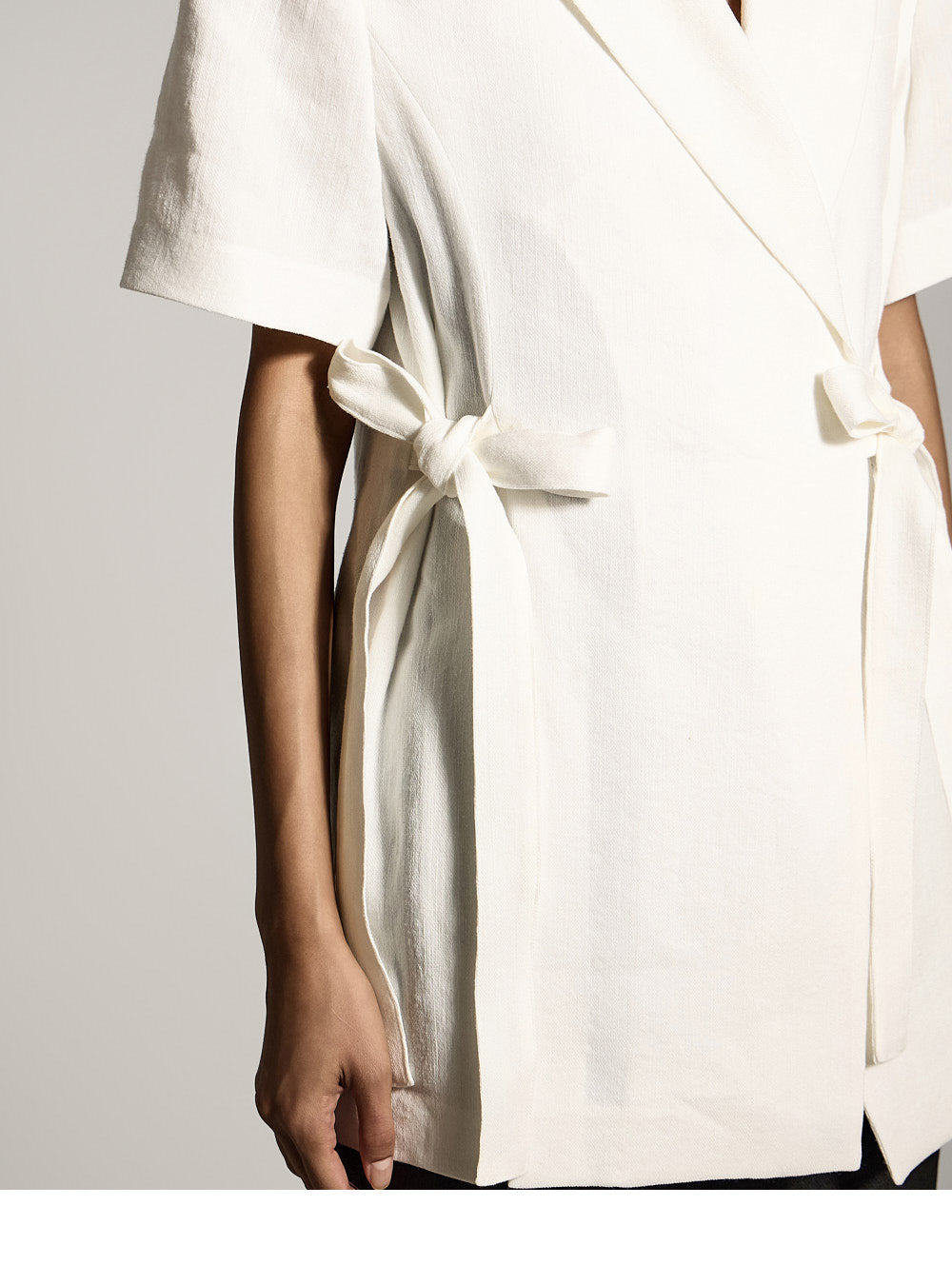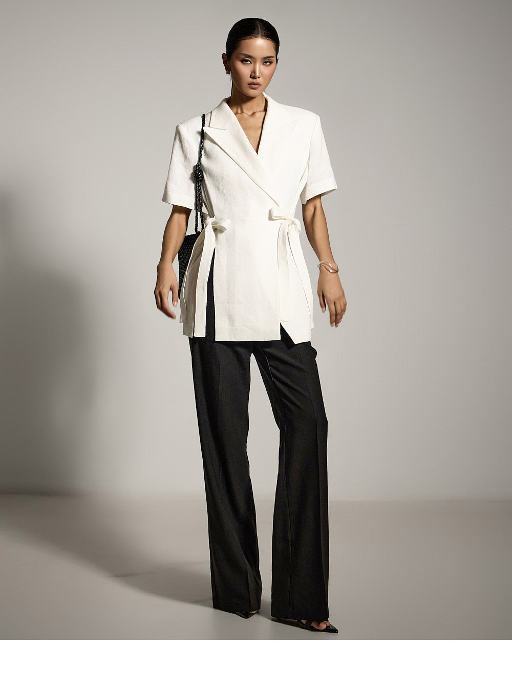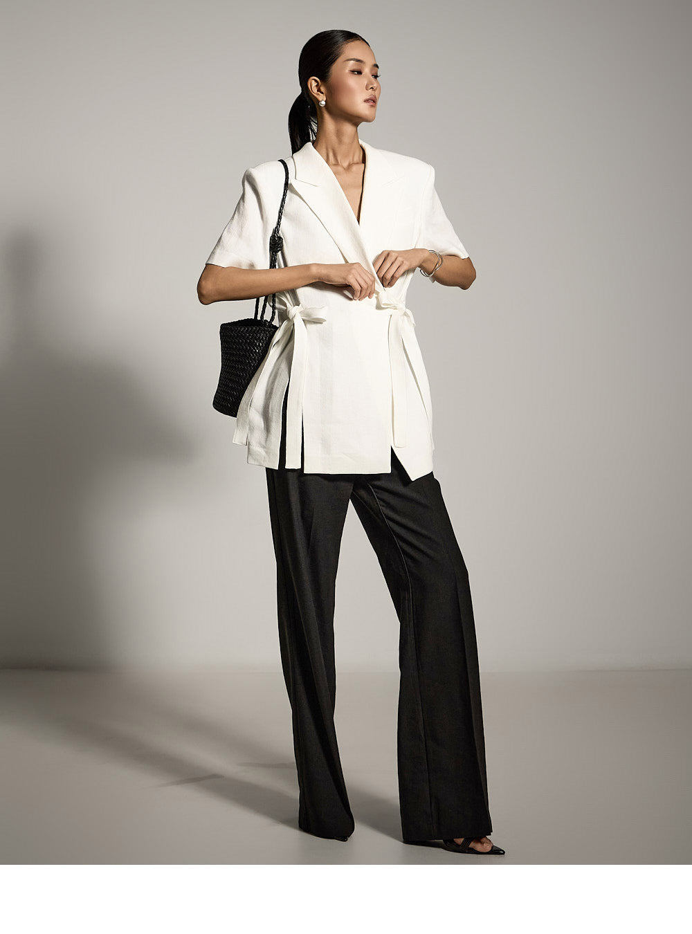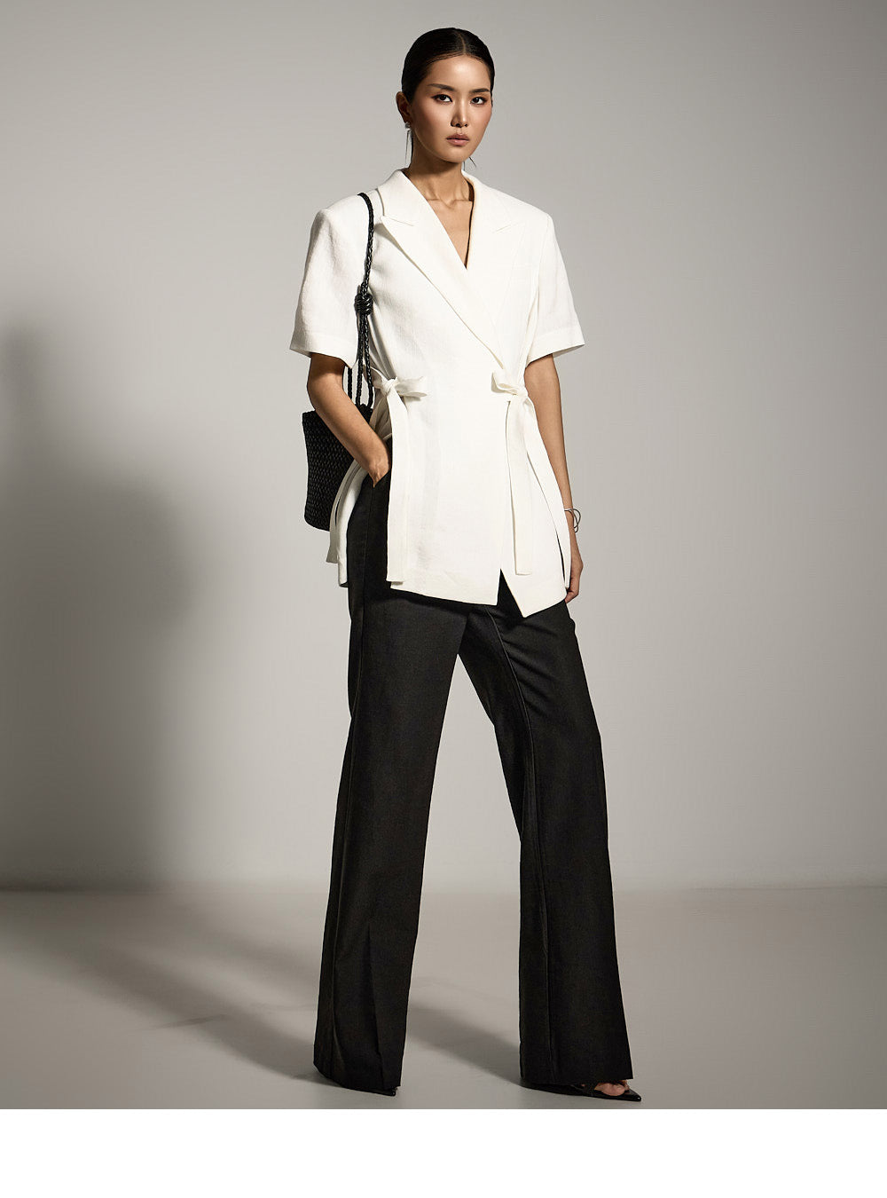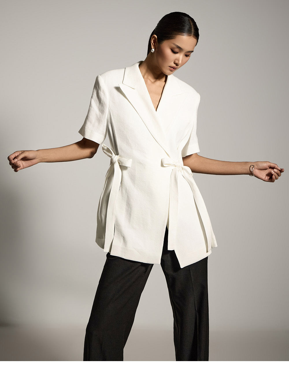 structured silhouette, while the relaxed boxy fit allows for easy,