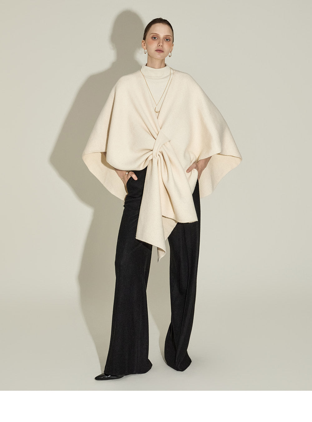 The cape-like silhouette creates an elegant atmosphere,