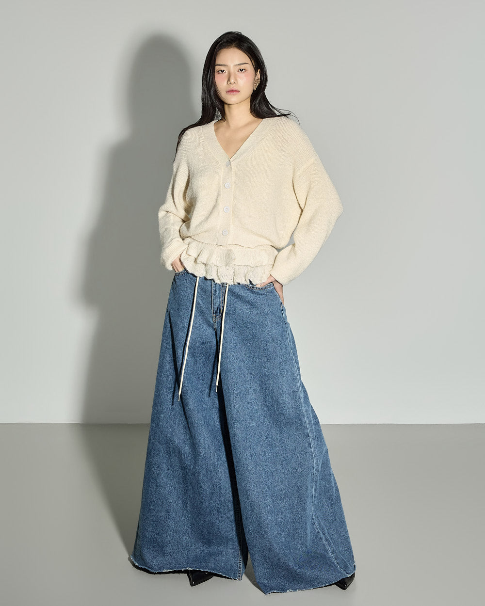 The loose fit and V-neck cardigan design
