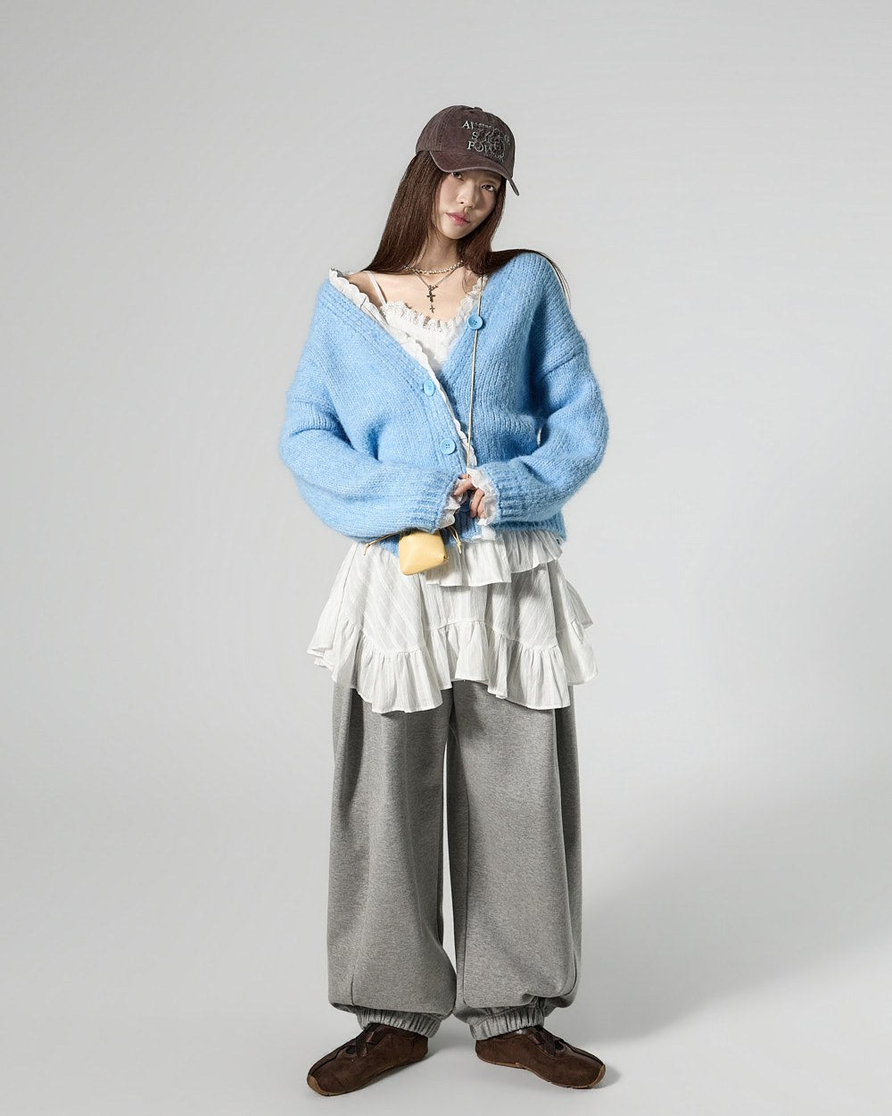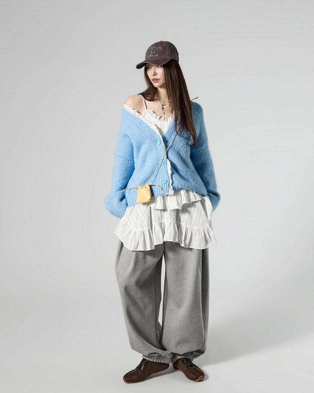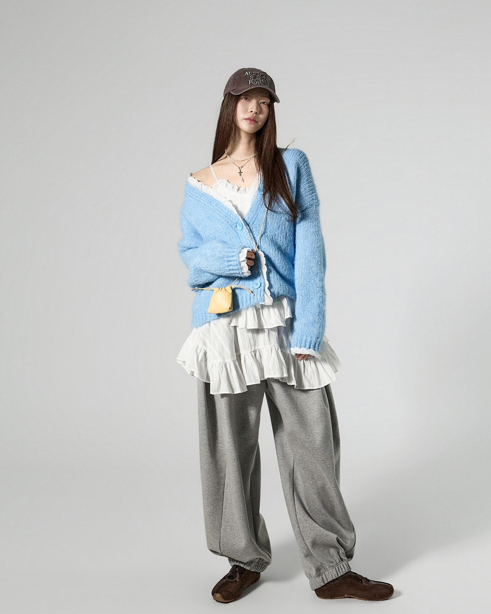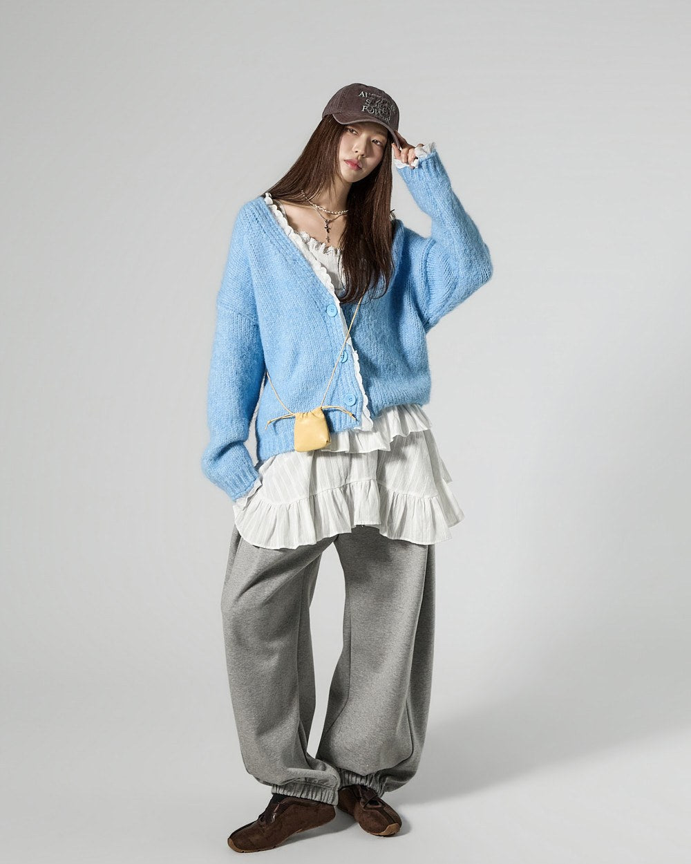 The 171cm model is wearing size ONE in SKY BLUE.