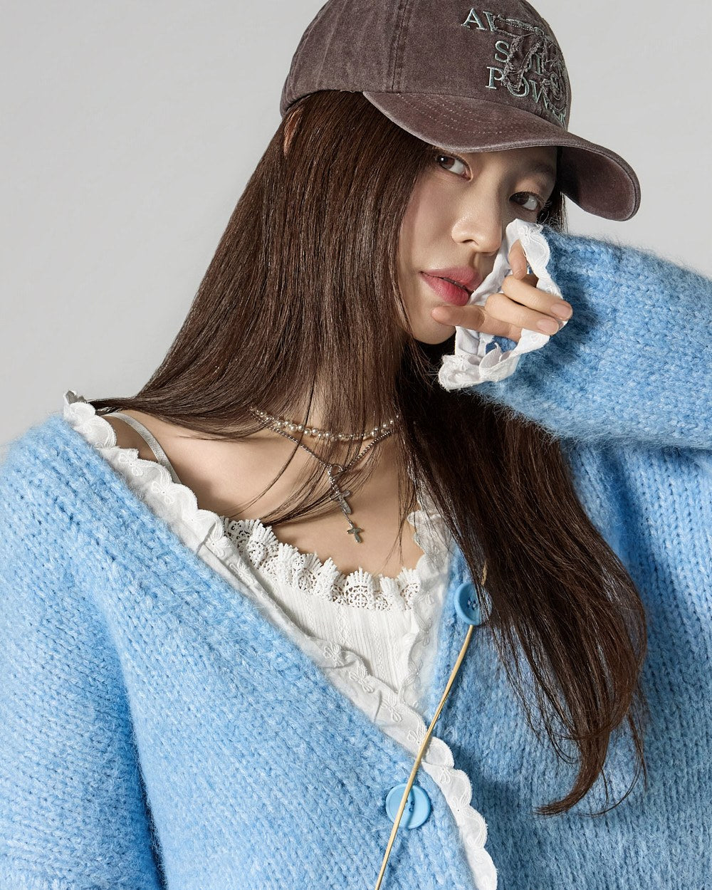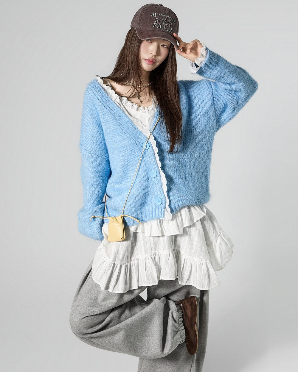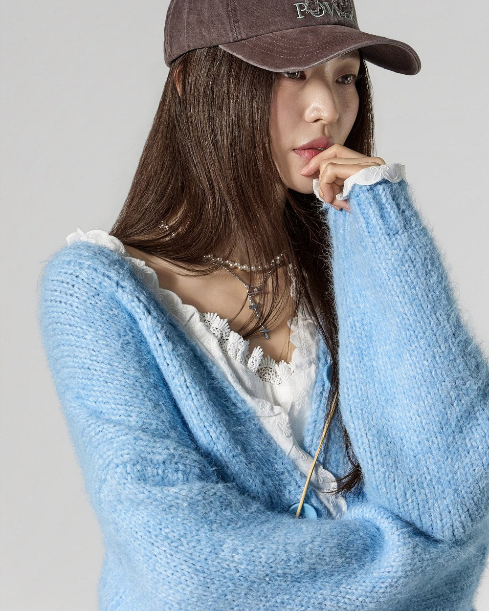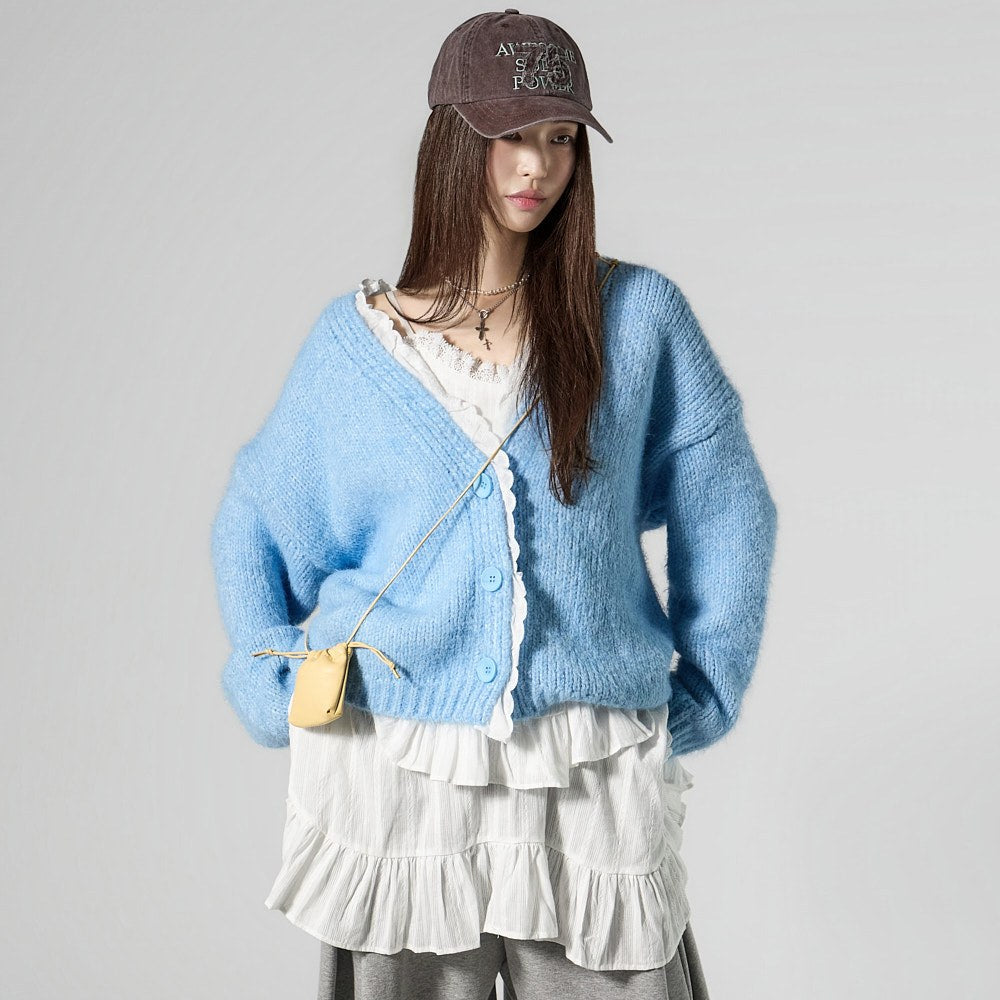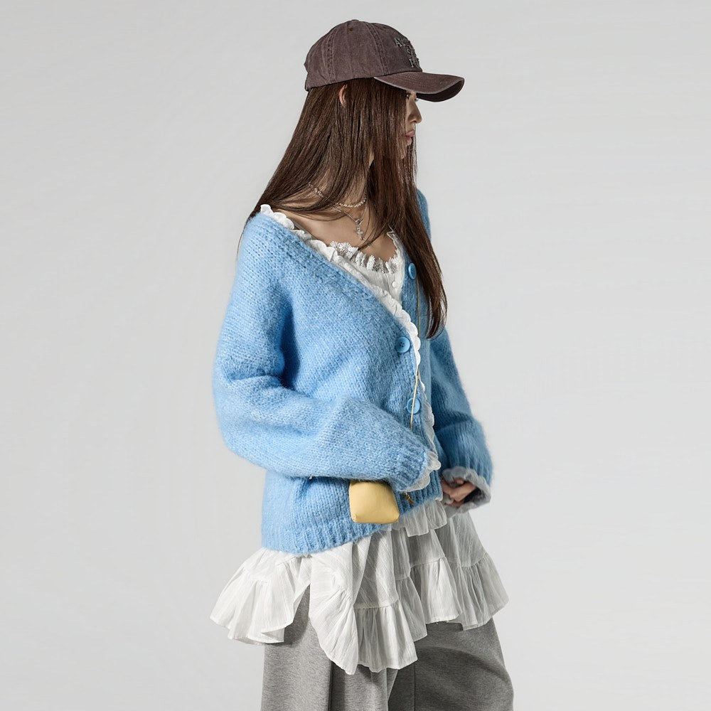 This lace V-neck cardigan exudes a casual vibe.