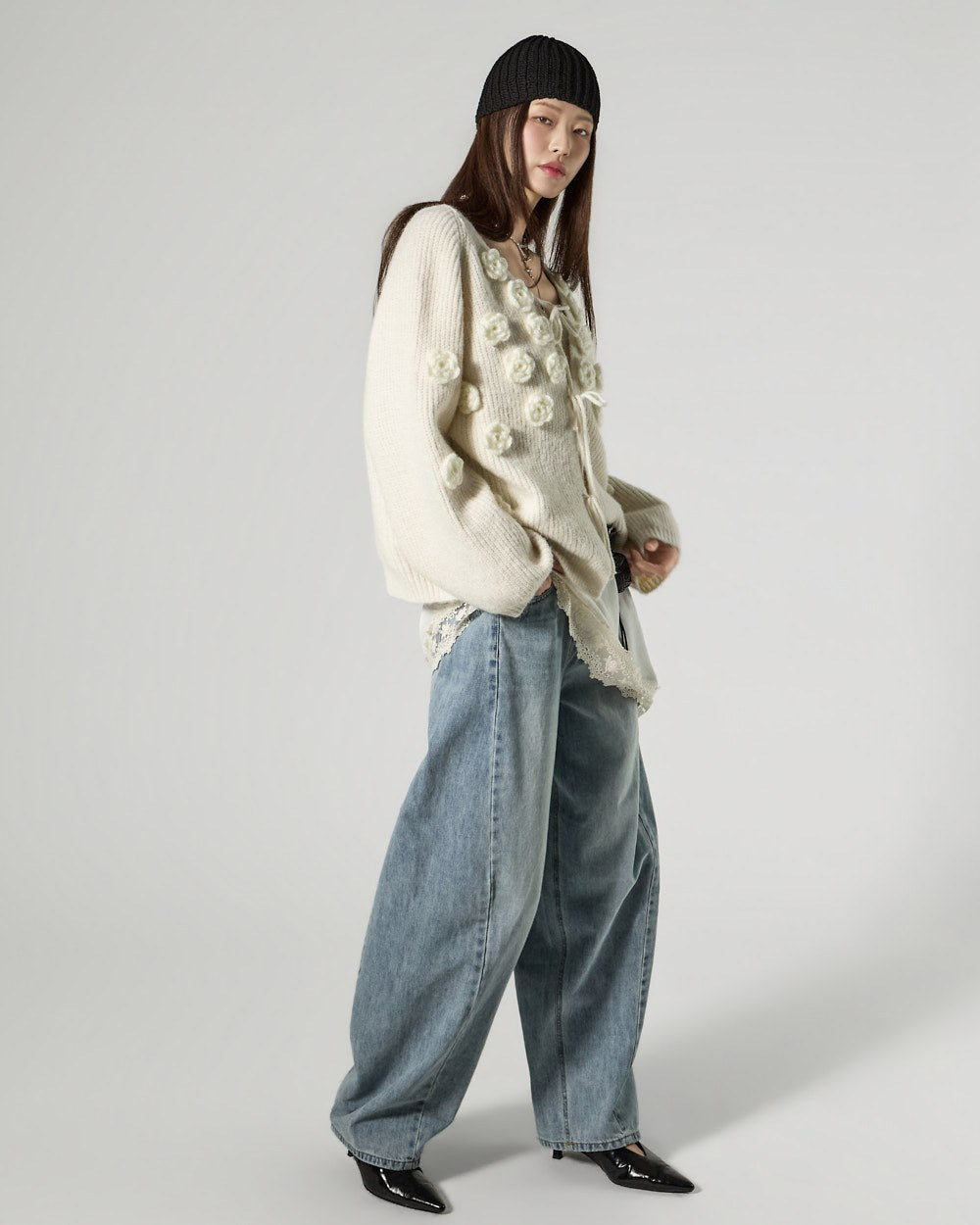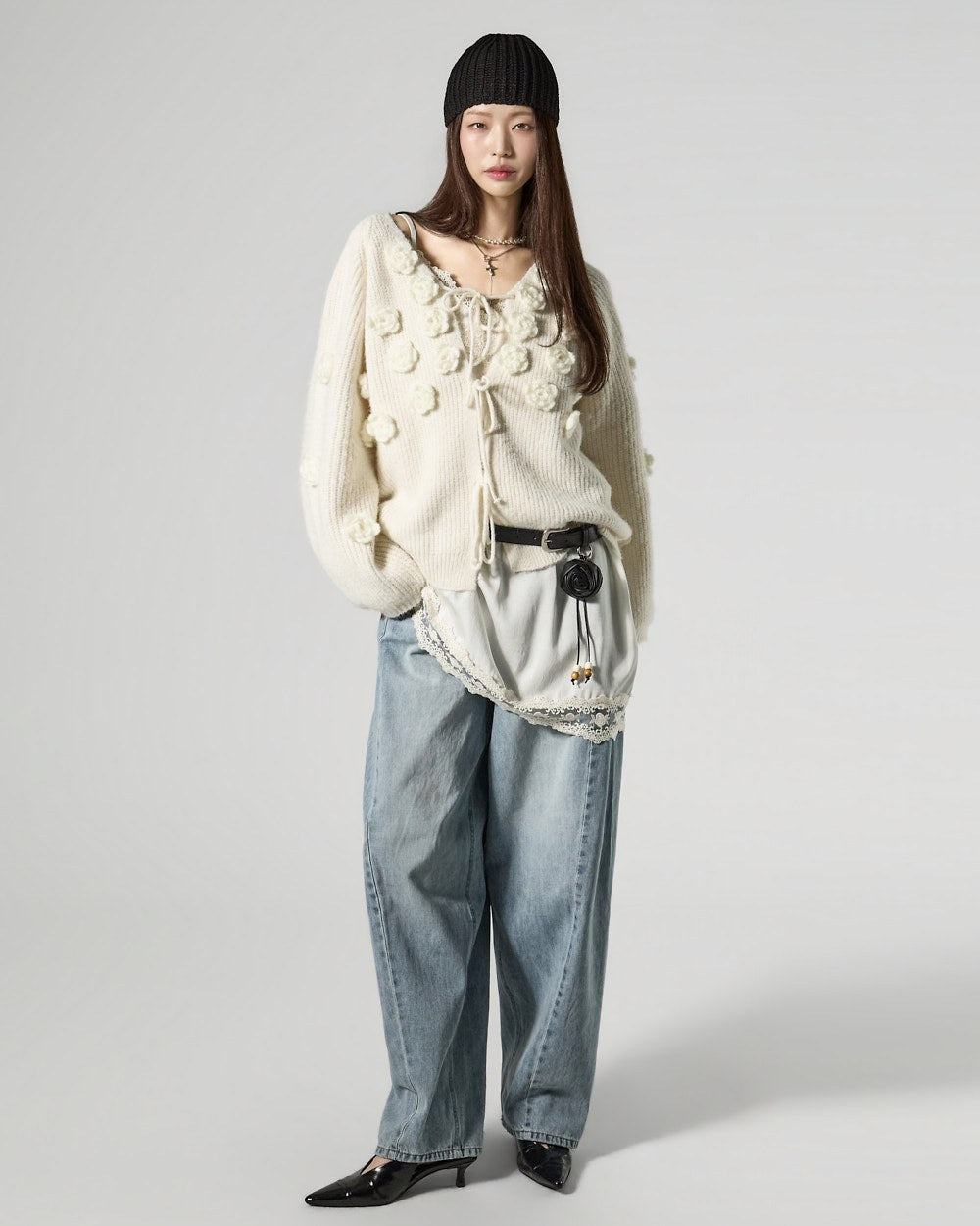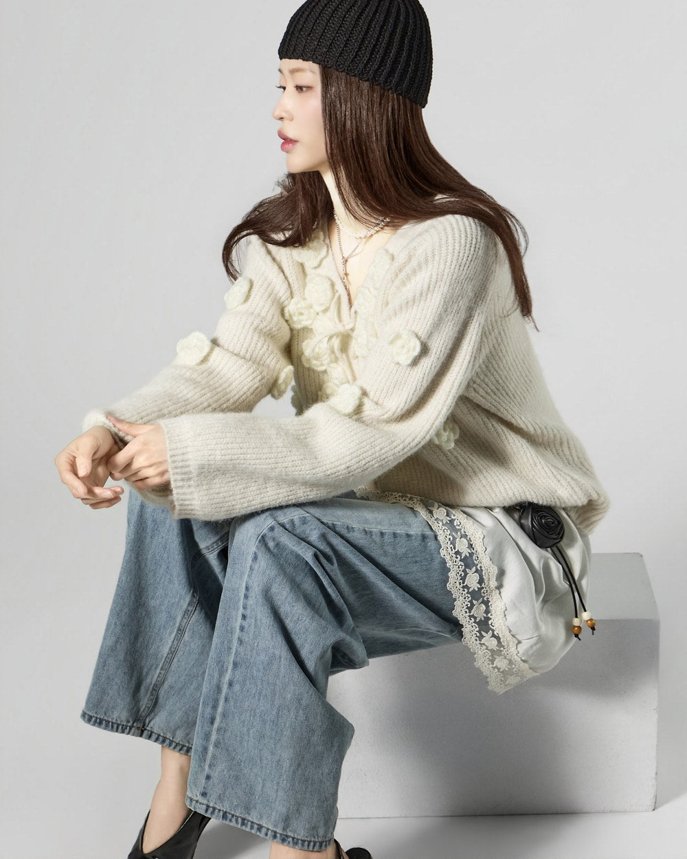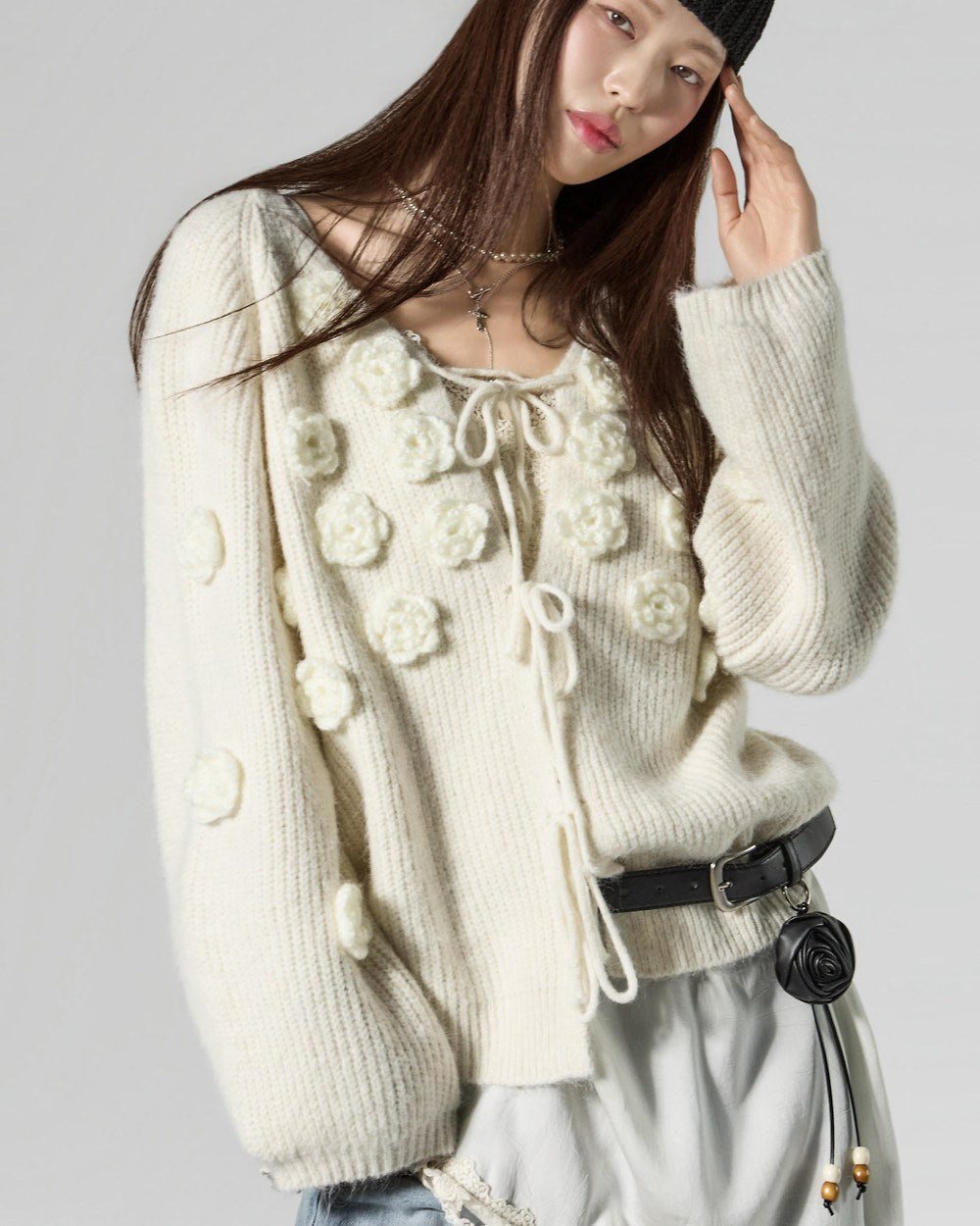 This lovely flower applique cardigan.