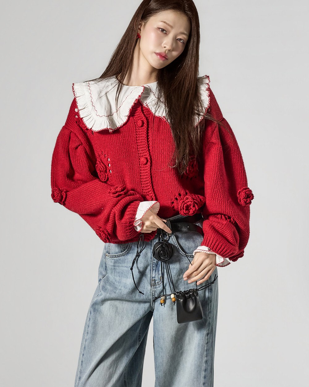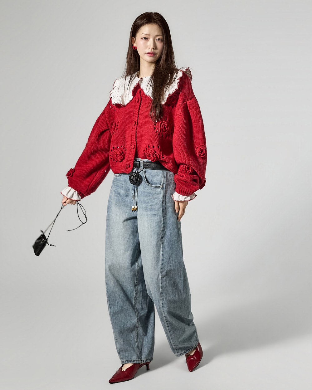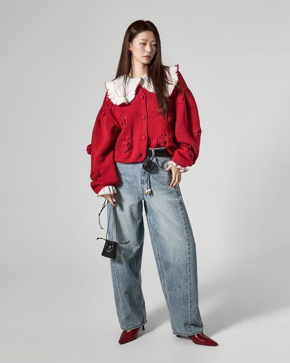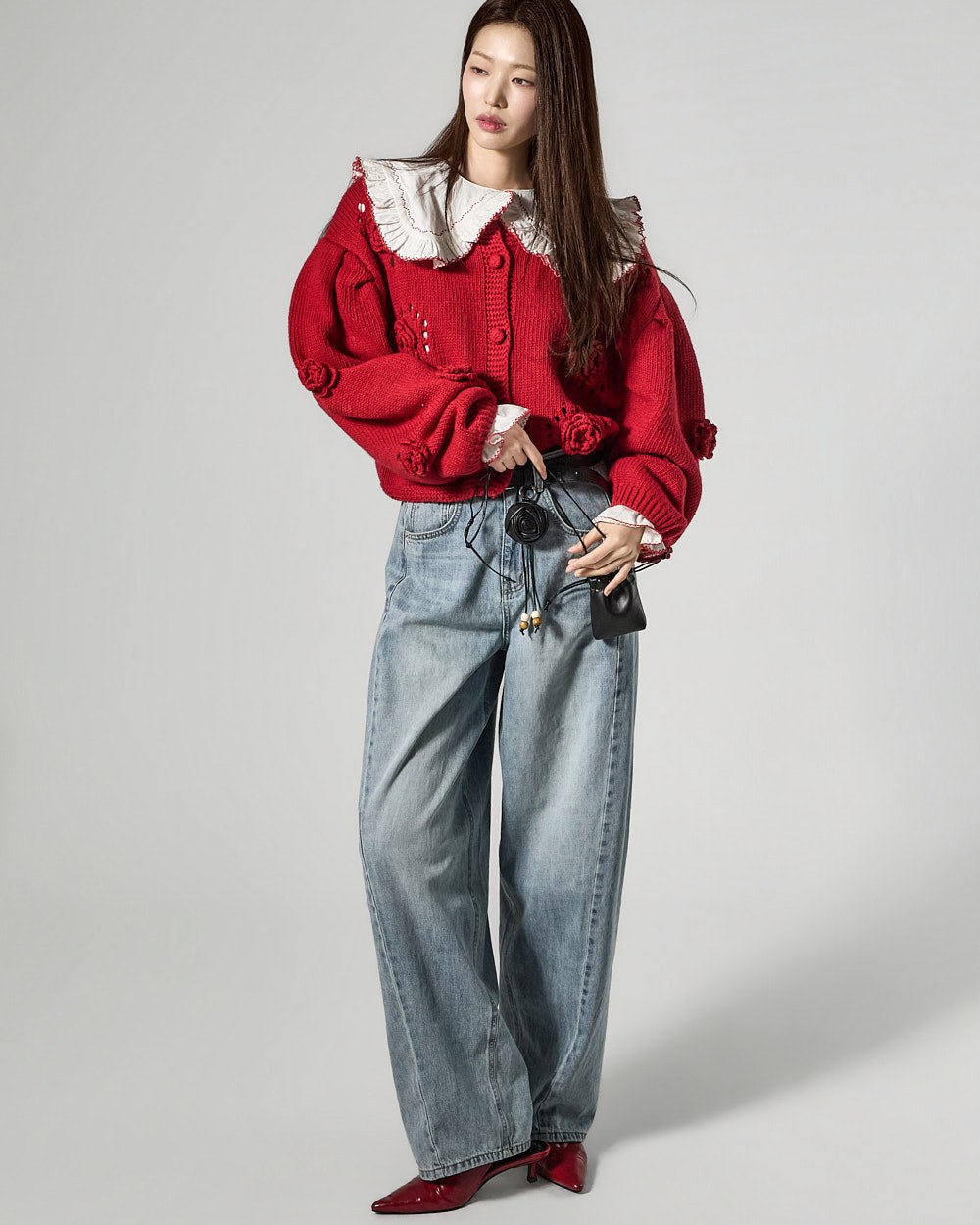 The model is 171cm tall and is wearing size ONE in color RED.