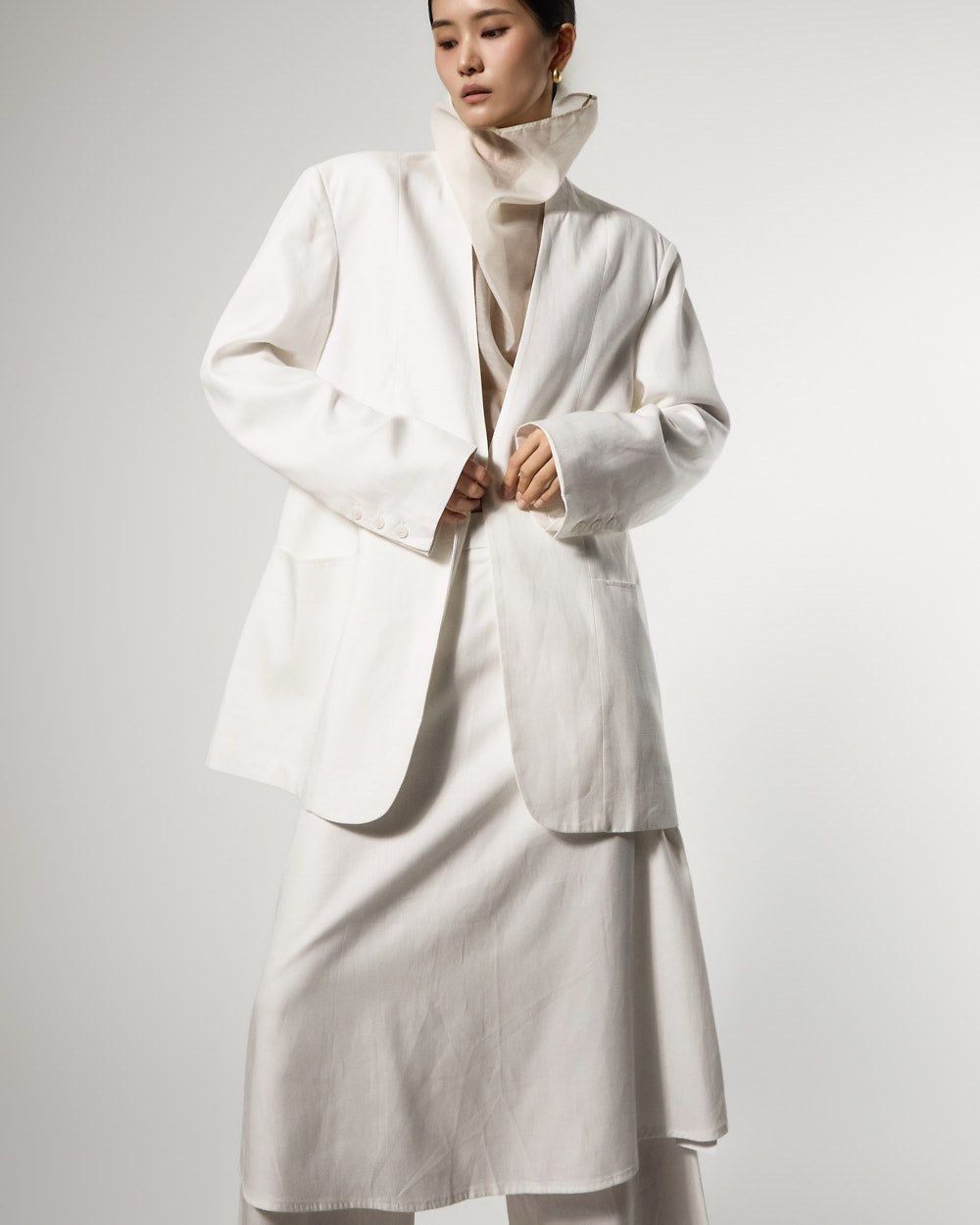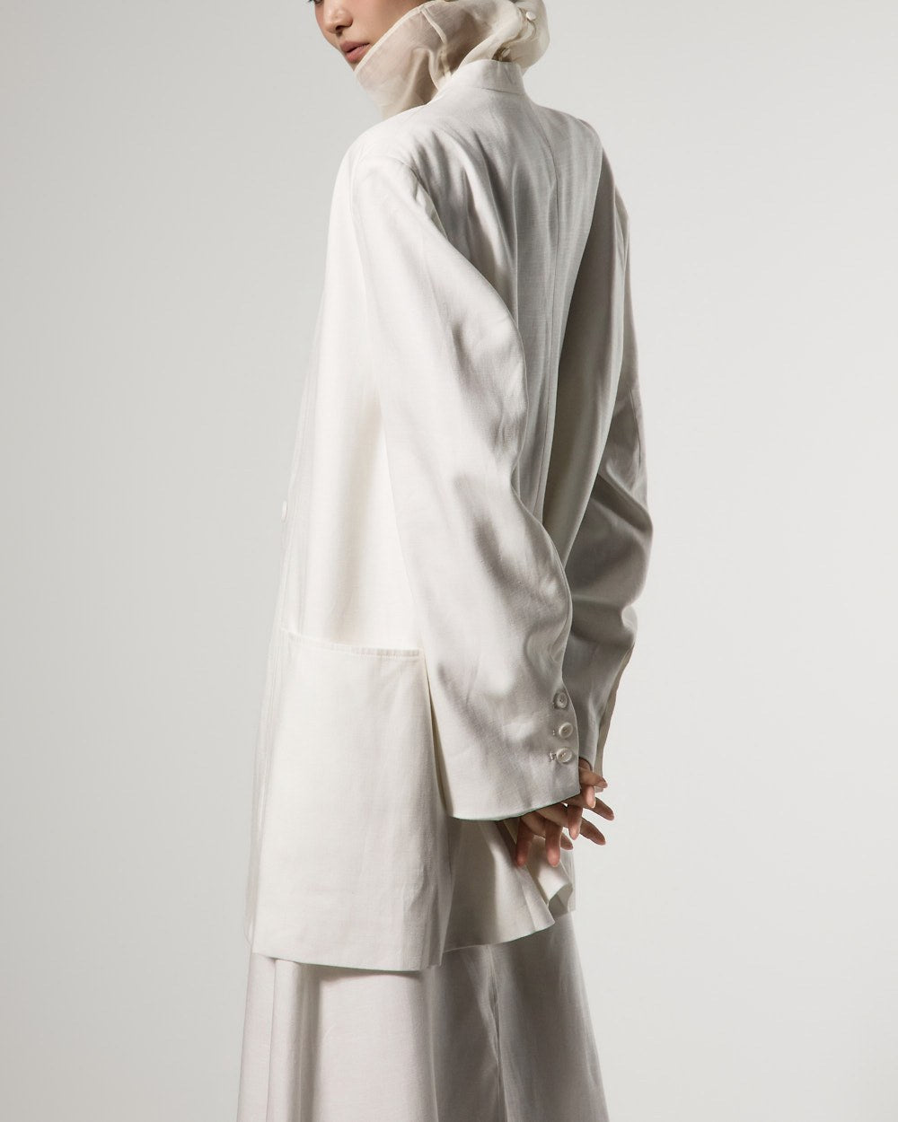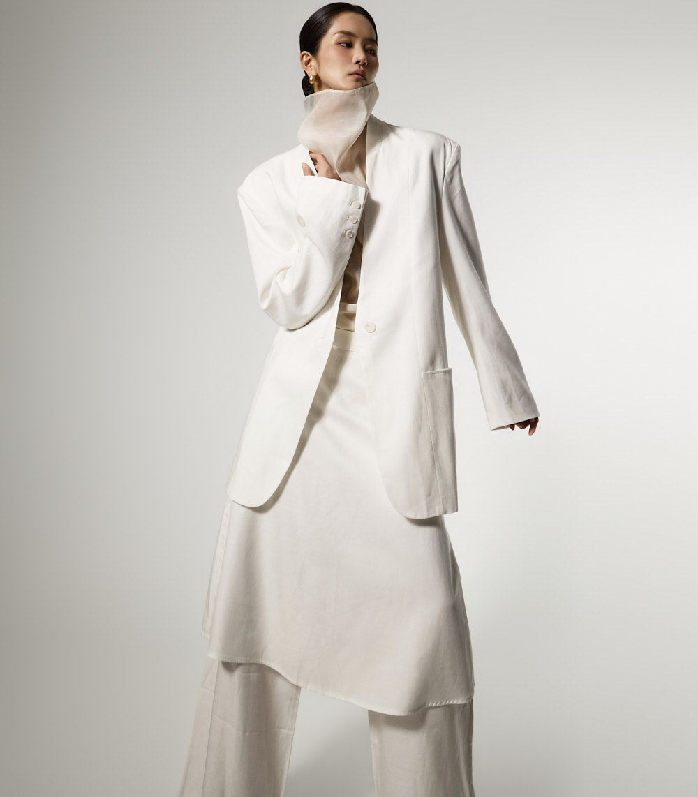 This is a linen oversized jacket with a modern vibe.