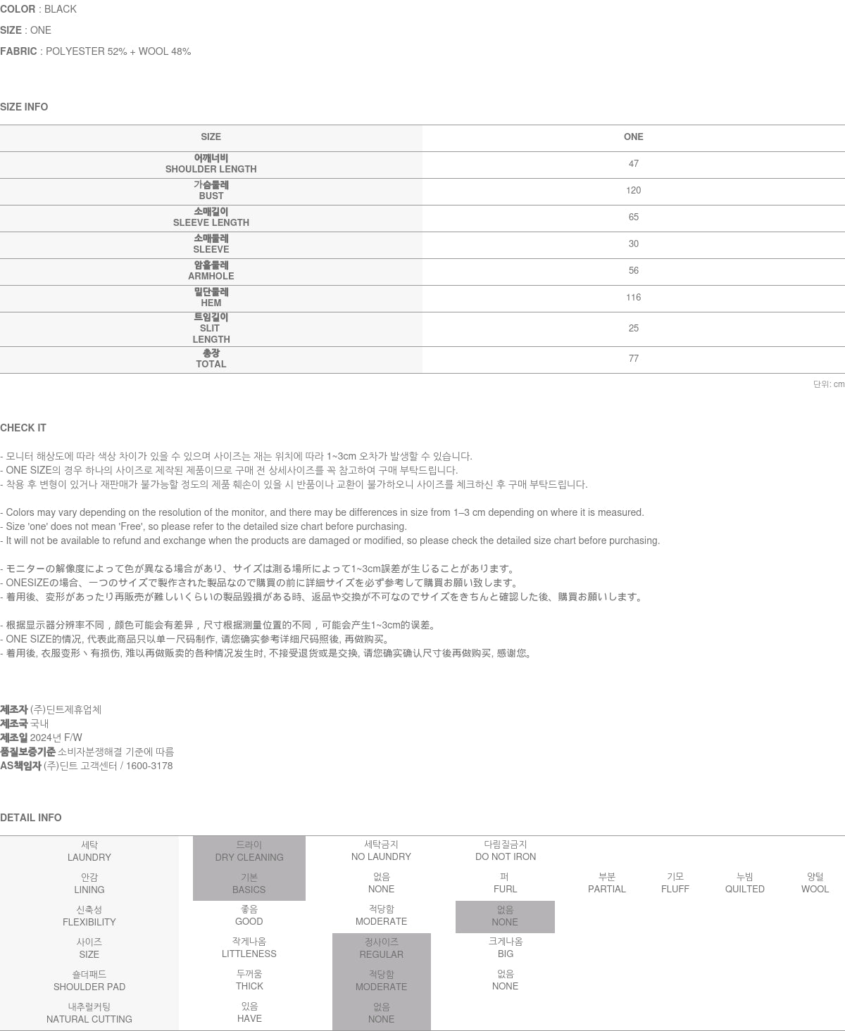 Clothing from DINT Co., Ltd. may become damaged or deformed if machine washed or tumble dried. We strongly recommend following the care instructions provided below.