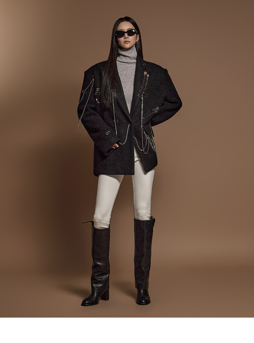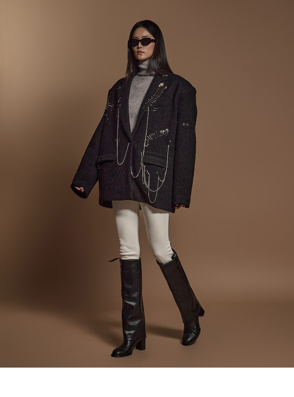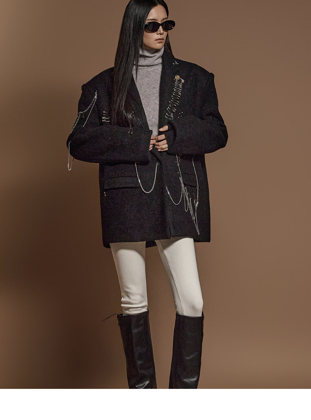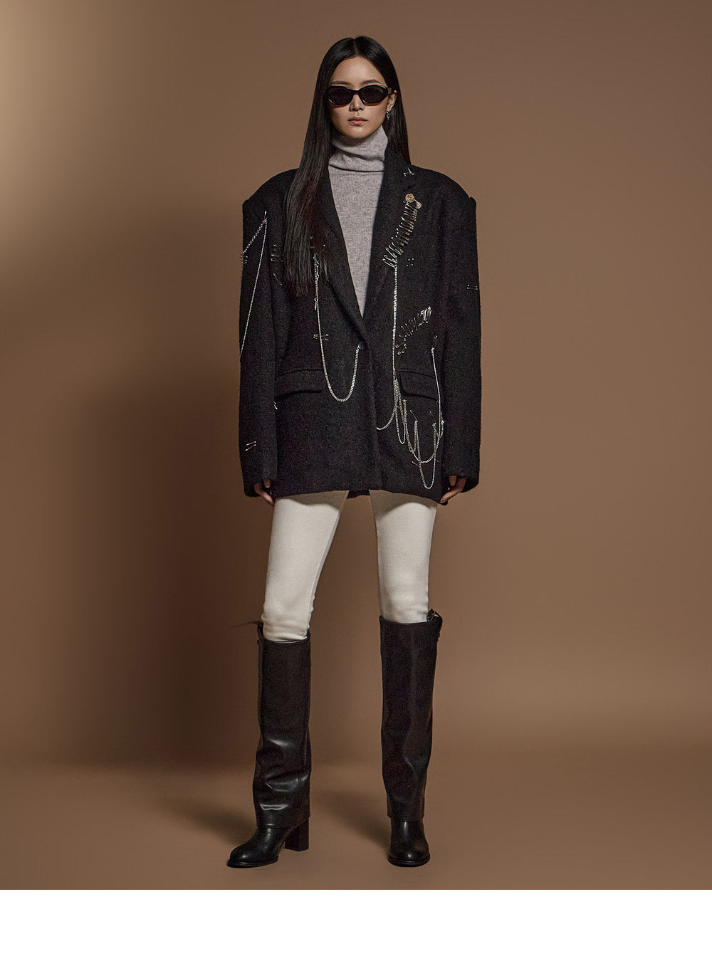 The chain and pin brooch details add a unique touch.????