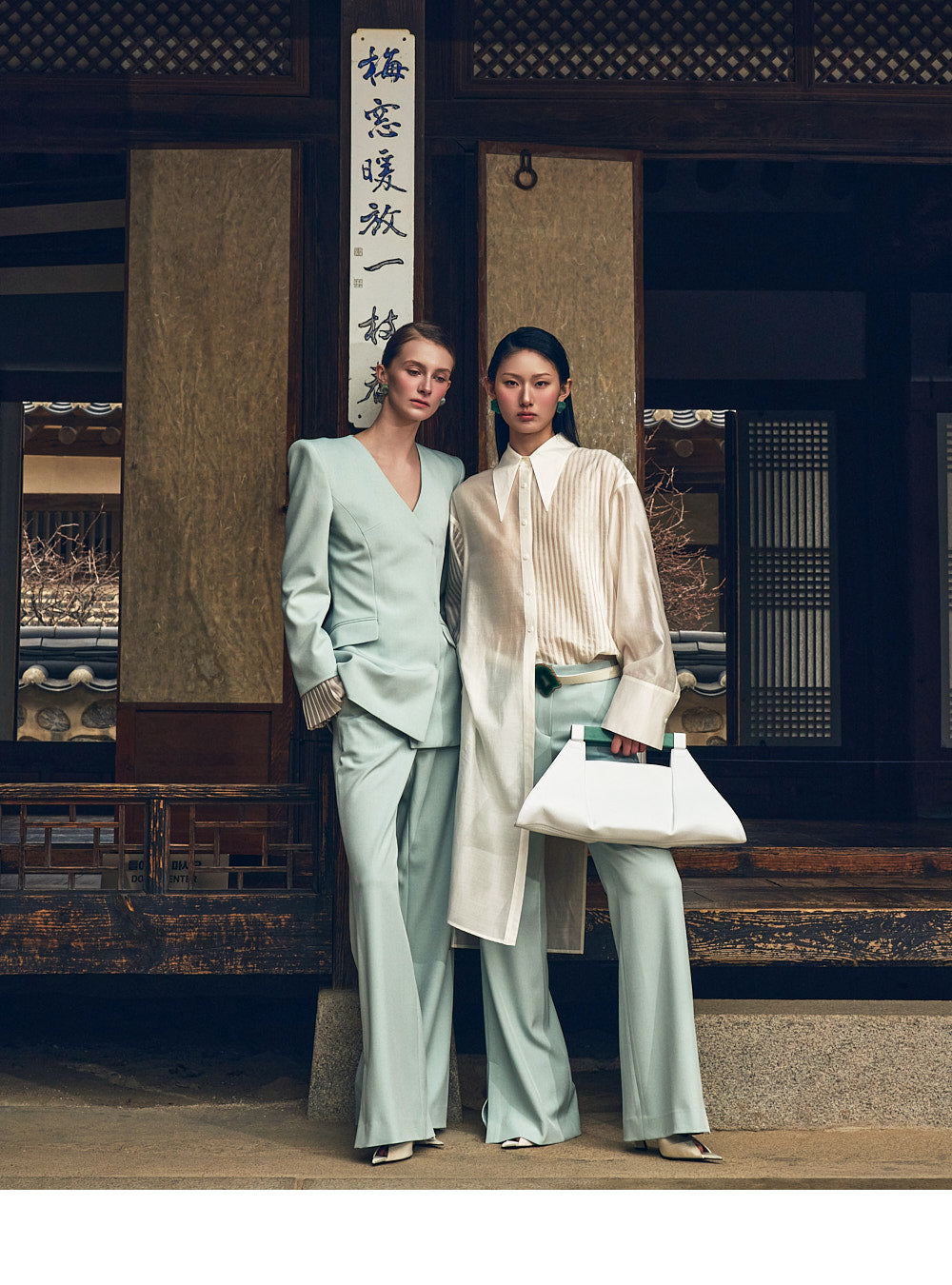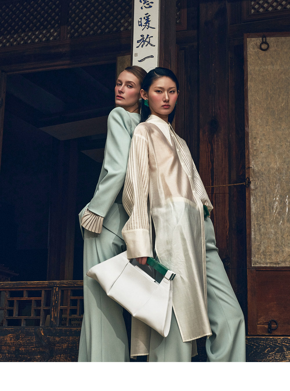 its refined pintuck details and relaxed silhouette.