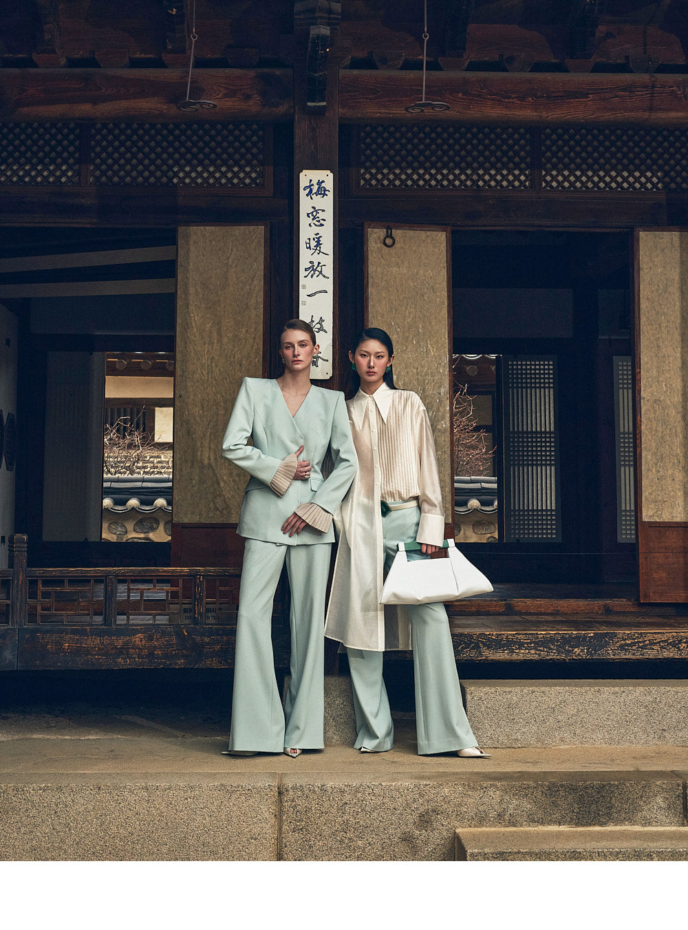 and the long sleeves with wide cuffs bring a modern finish to the design.