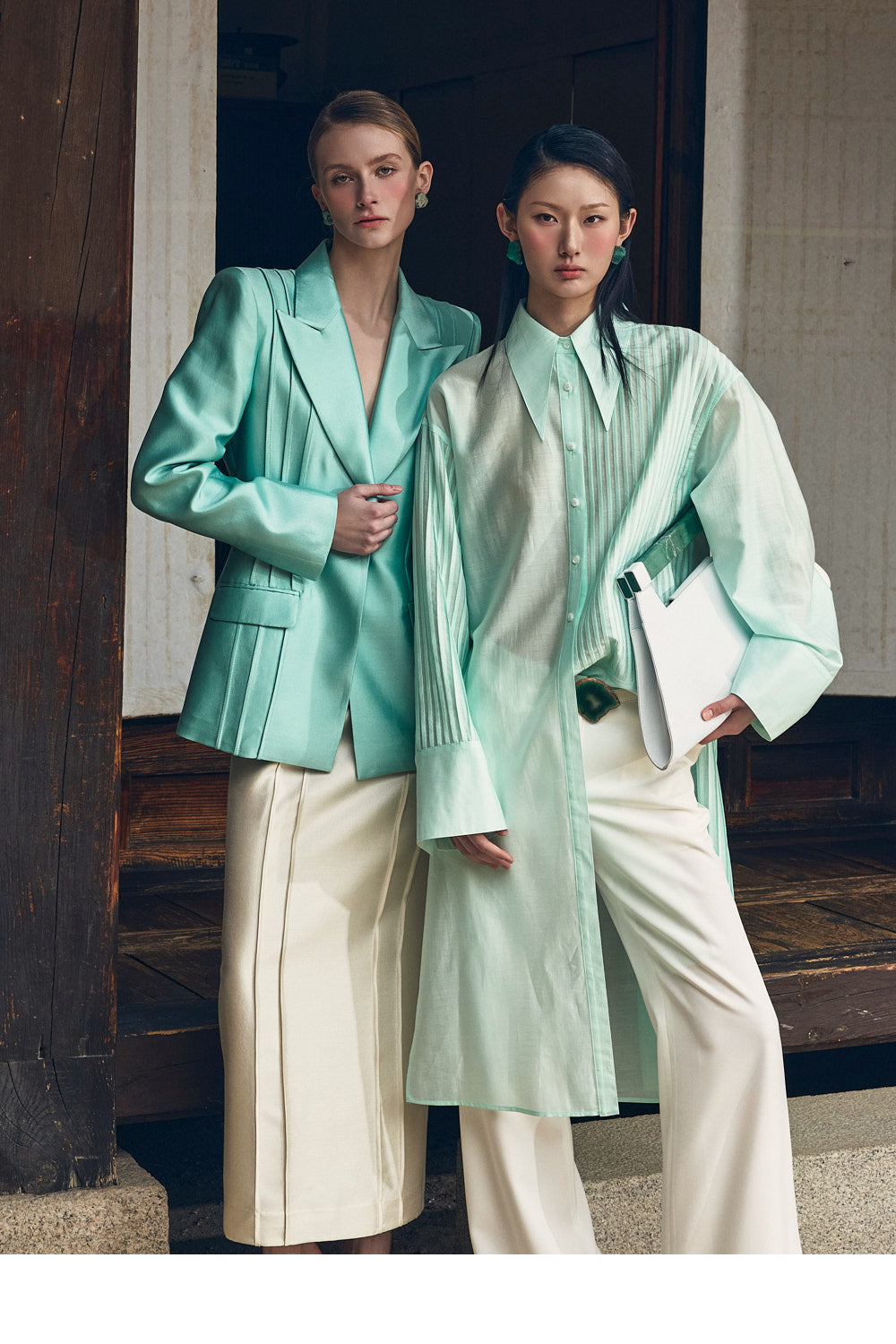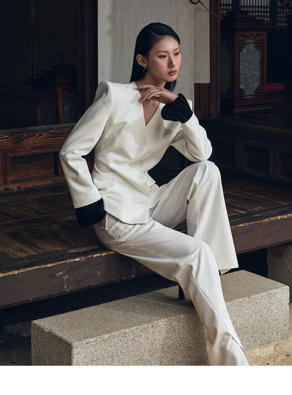 while the pants are available in sizes 1(S) and 2(M) for a tailored fit.