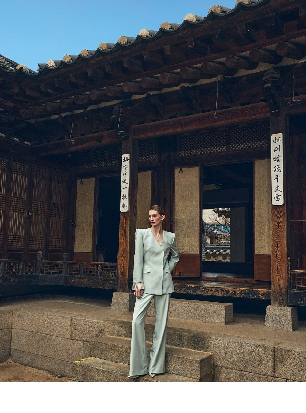 while the pants are available in sizes 1(S) and 2(M) for a tailored fit.