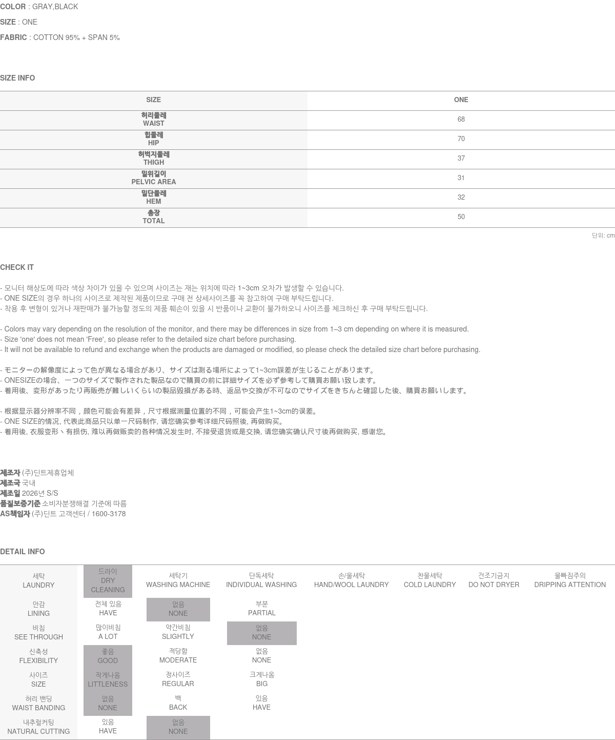 • Clothing from DINT Co., Ltd. may become damaged or deformed if machine washed or tumble dried. We strongly recommend following the care instructions provided below.