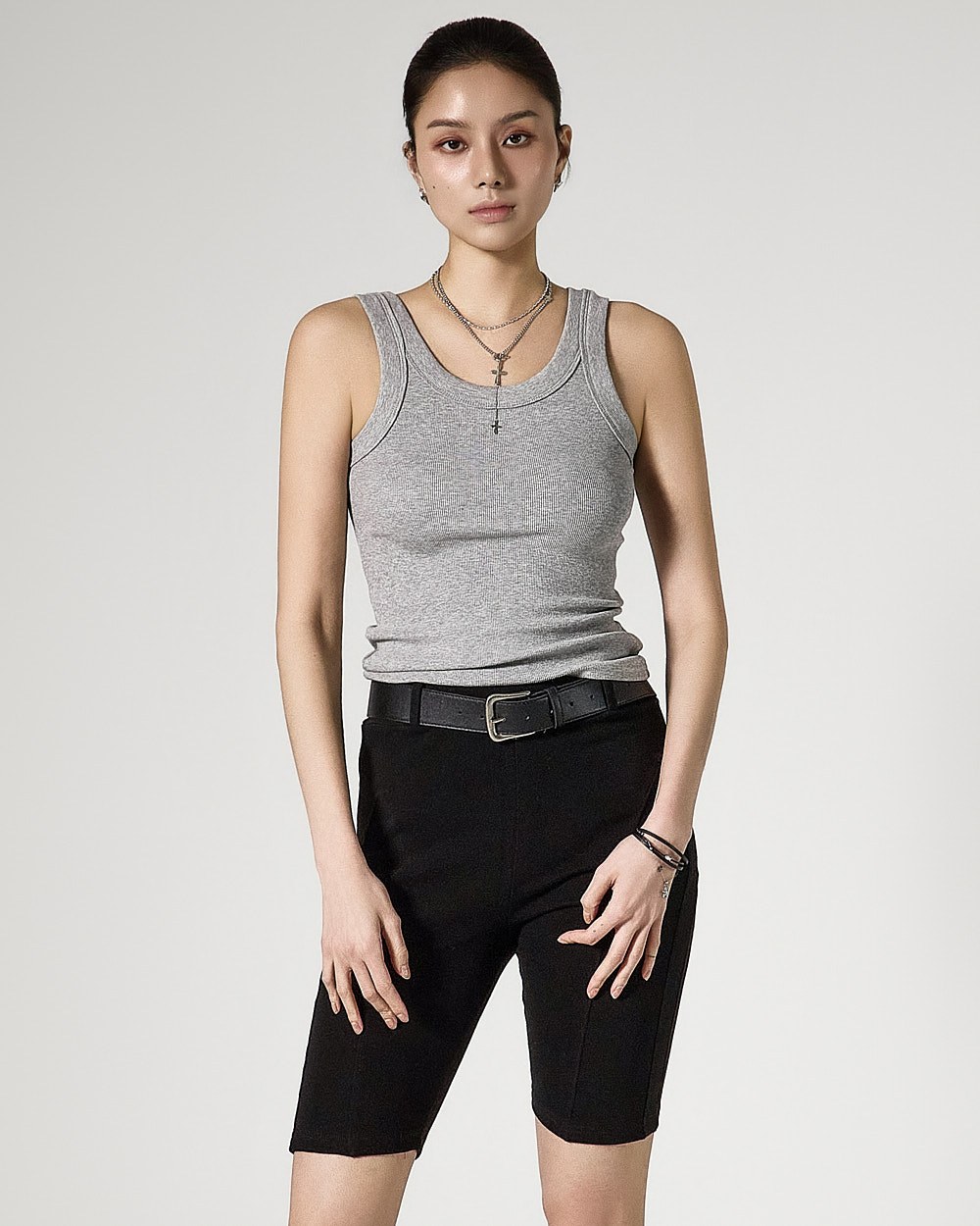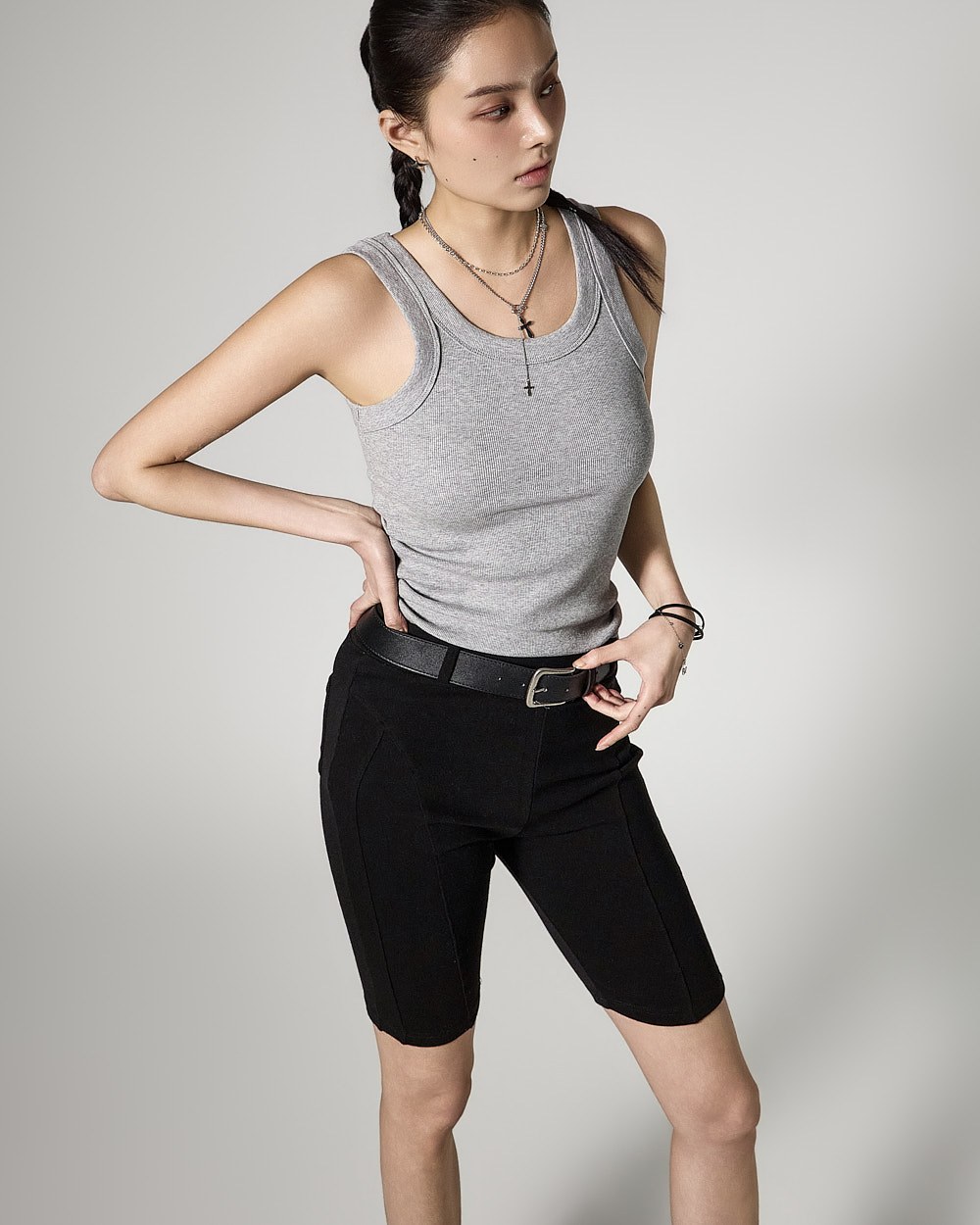 The slim-fit silhouette follows the body line,