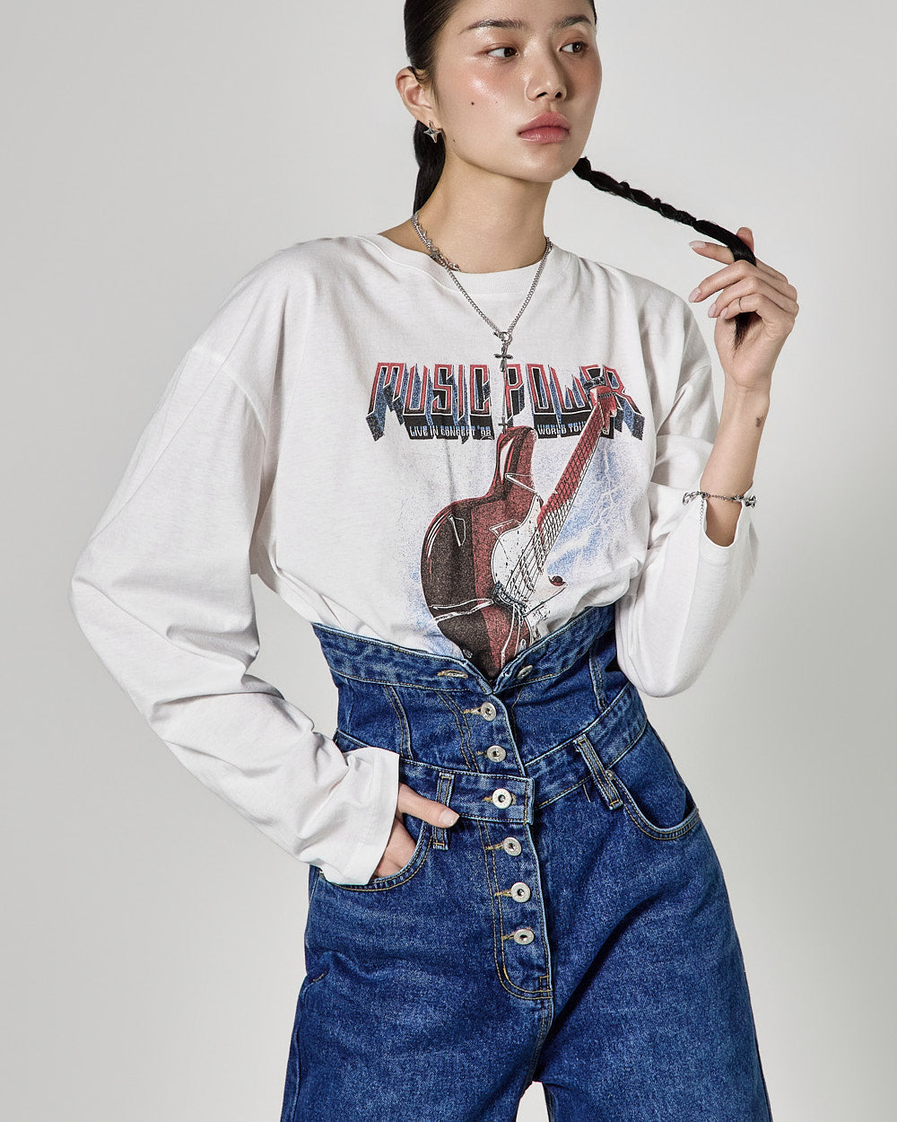 The high-waisted button detail and wide fit combine to create a classic yet unique silhouette,