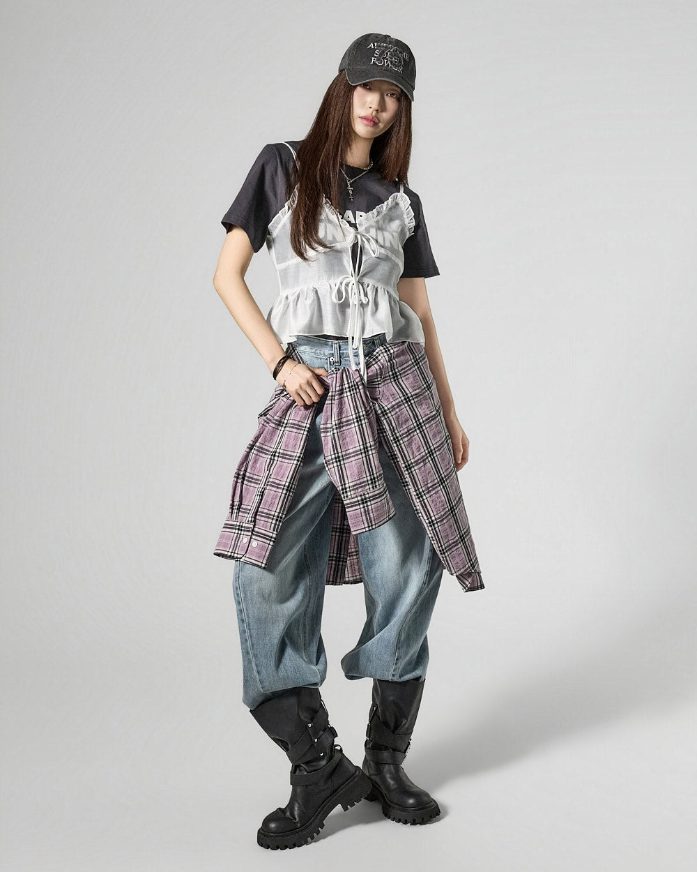 These semi-balloon jeans offer a stylish yet casual vibe.
