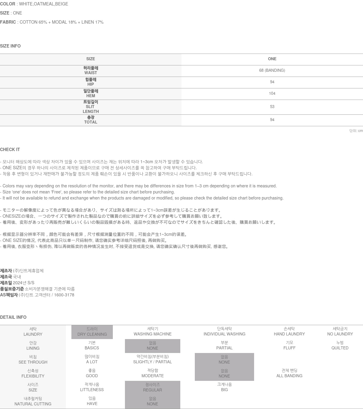 Clothing from DINT Co., Ltd. may become damaged or deformed if machine washed or tumble dried. We strongly recommend following the care instructions provided below.