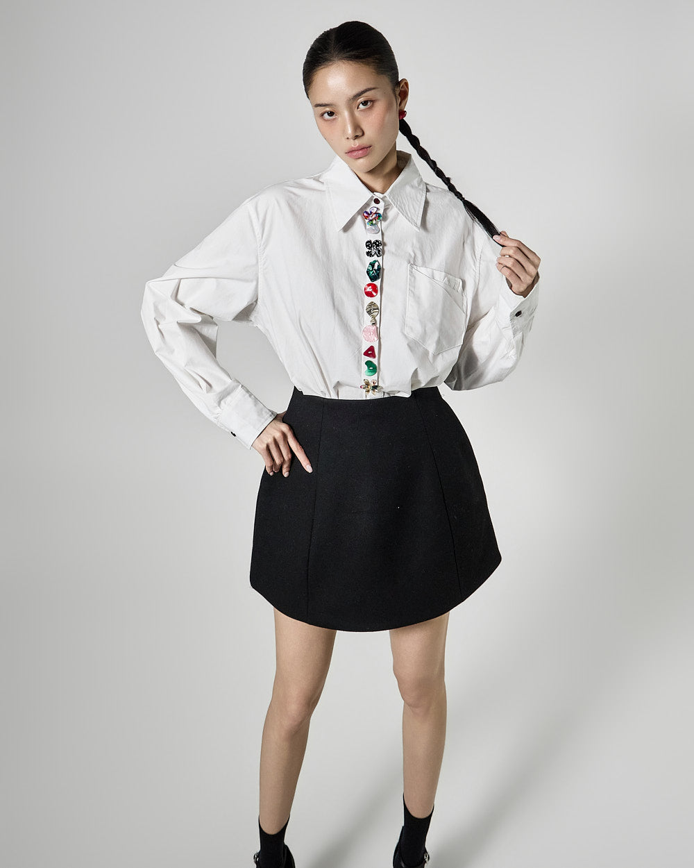 This jewelry button shirt has a casual vibe.