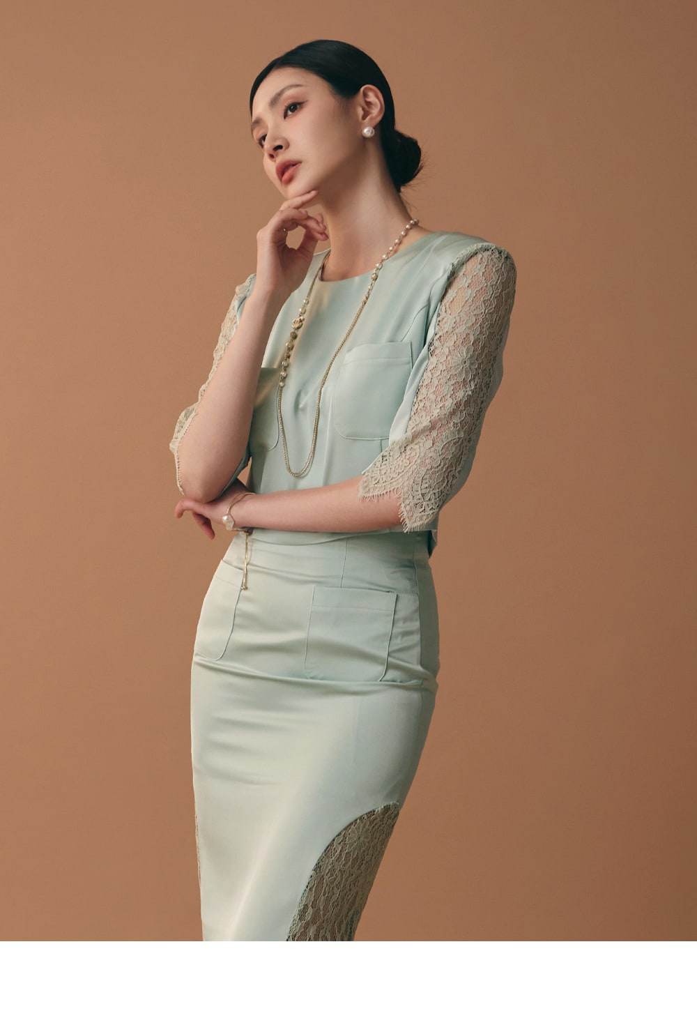"Lace Slim Midi Skirt."
