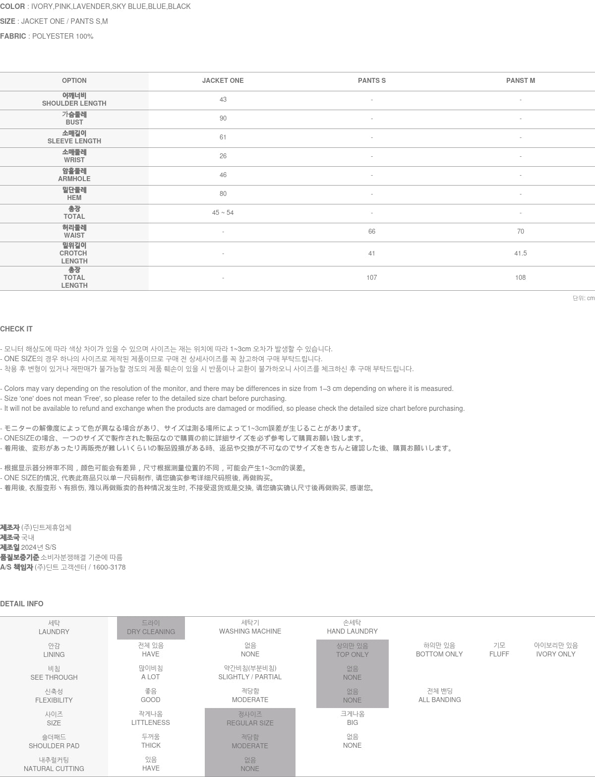 Clothing from DINT Co., Ltd. may become damaged or deformed if machine washed or tumble dried. We strongly recommend following the care instructions provided below.