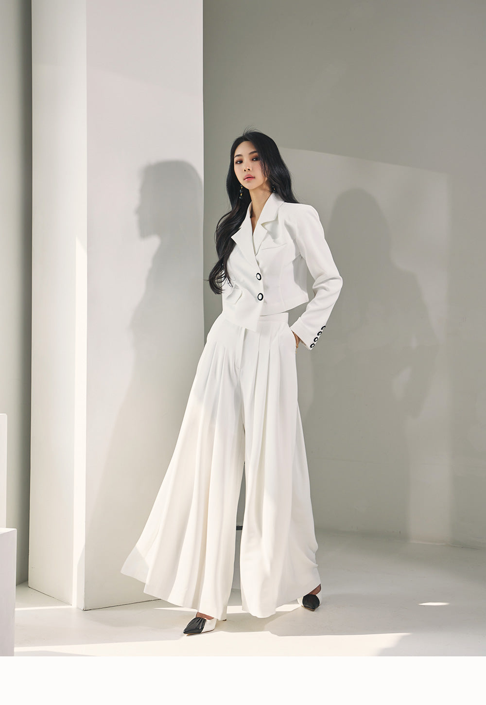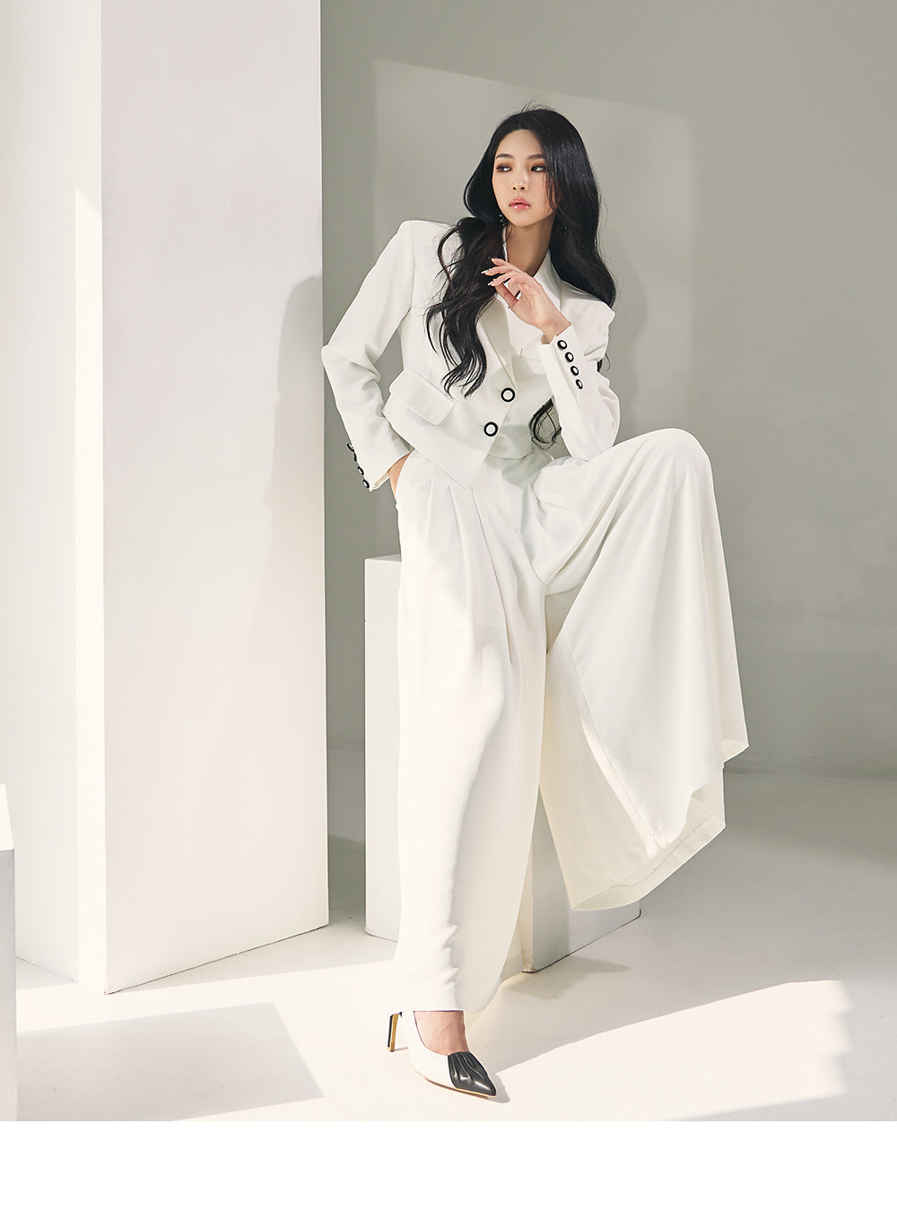This two-piece set exudes a stylish mood.