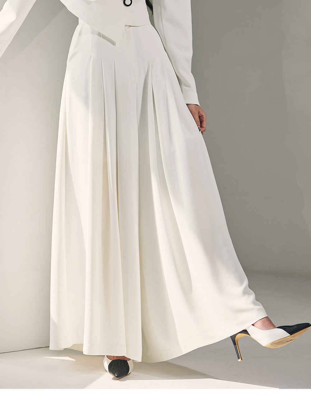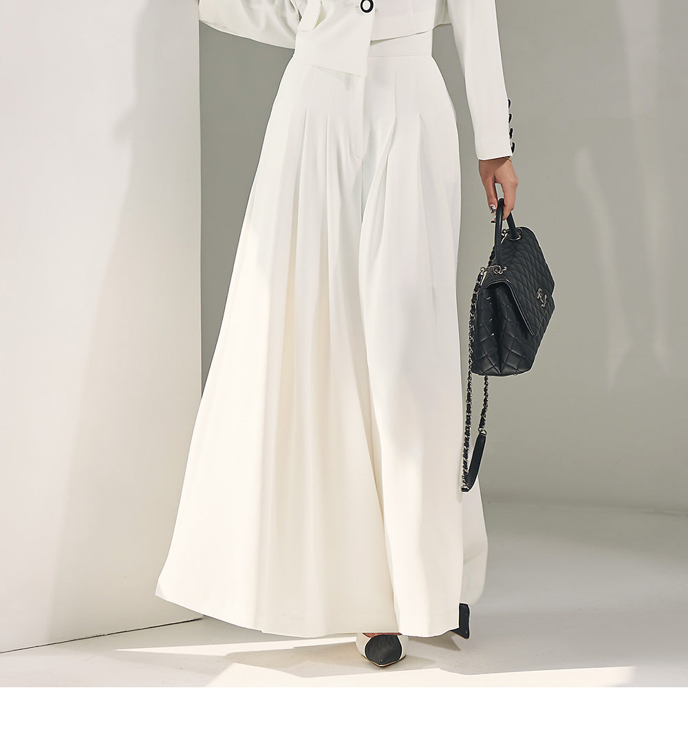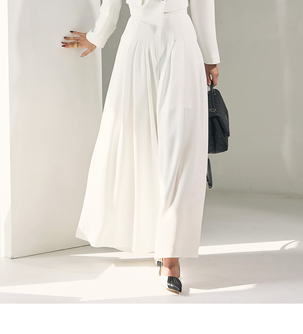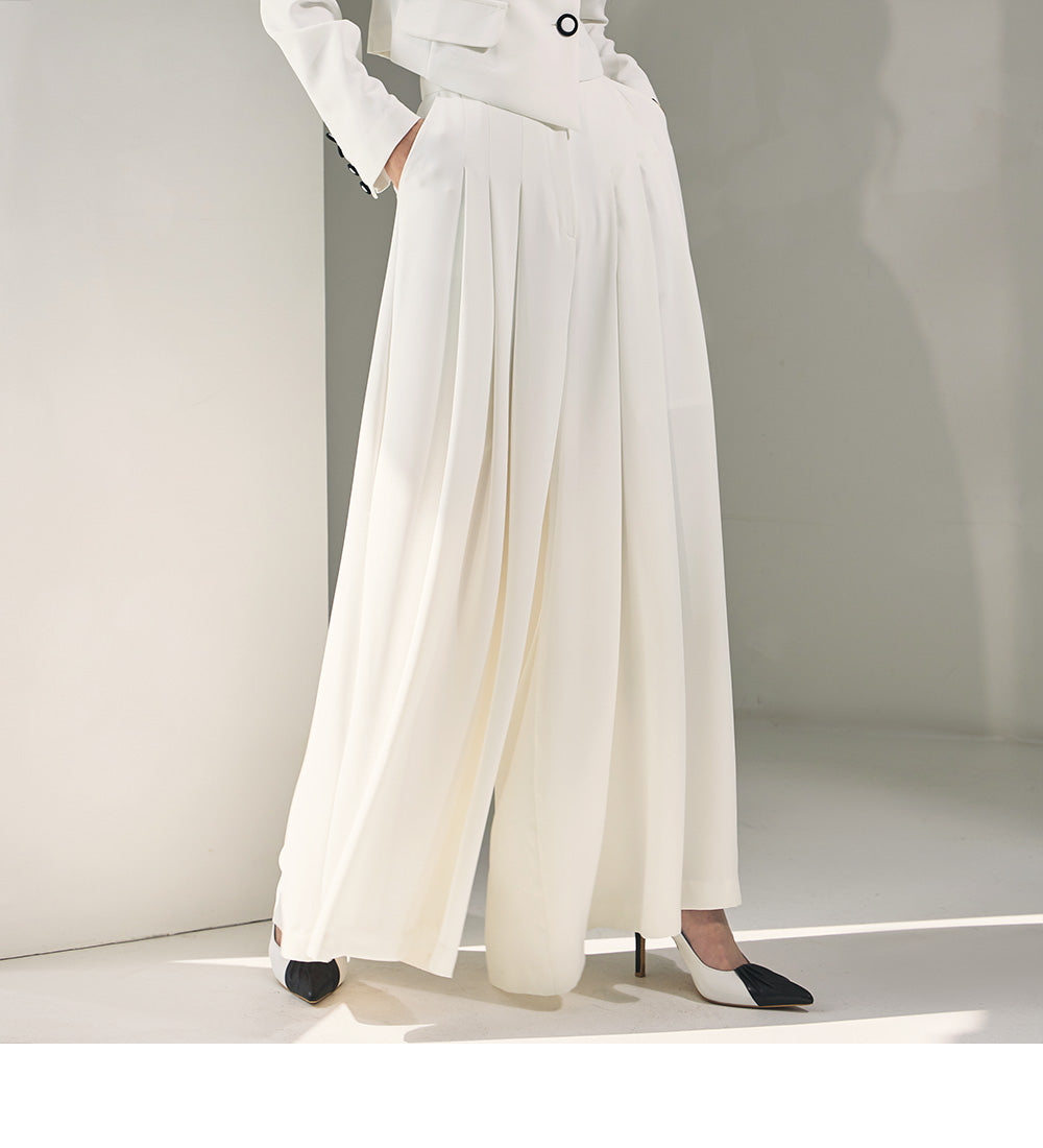 and a wide-legged pleated design for comfort and coverage.