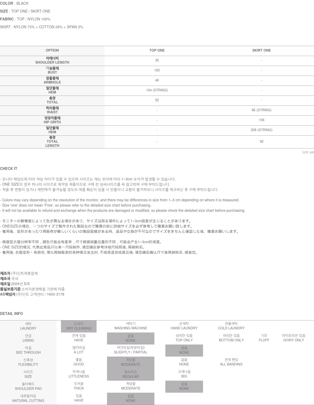 Clothing from DINT Co., Ltd. may become damaged or deformed if machine washed or tumble dried. We strongly recommend following the care instructions provided below.