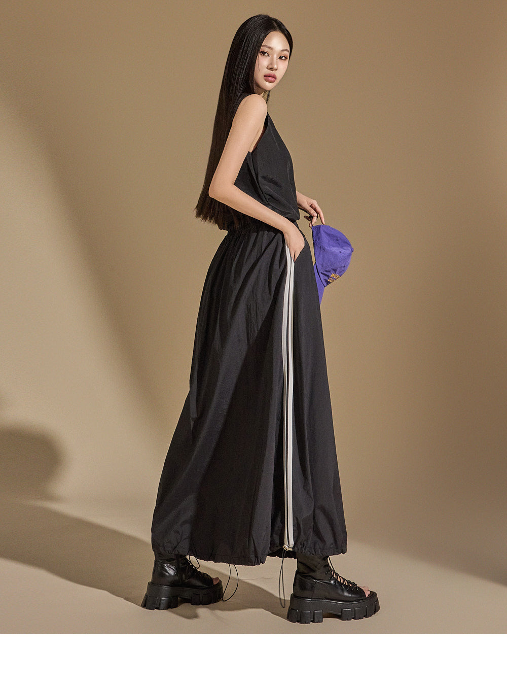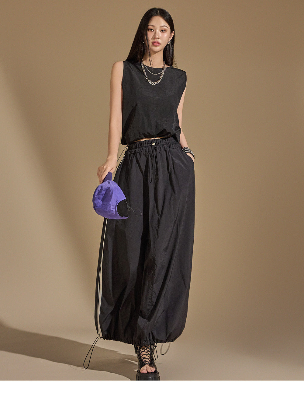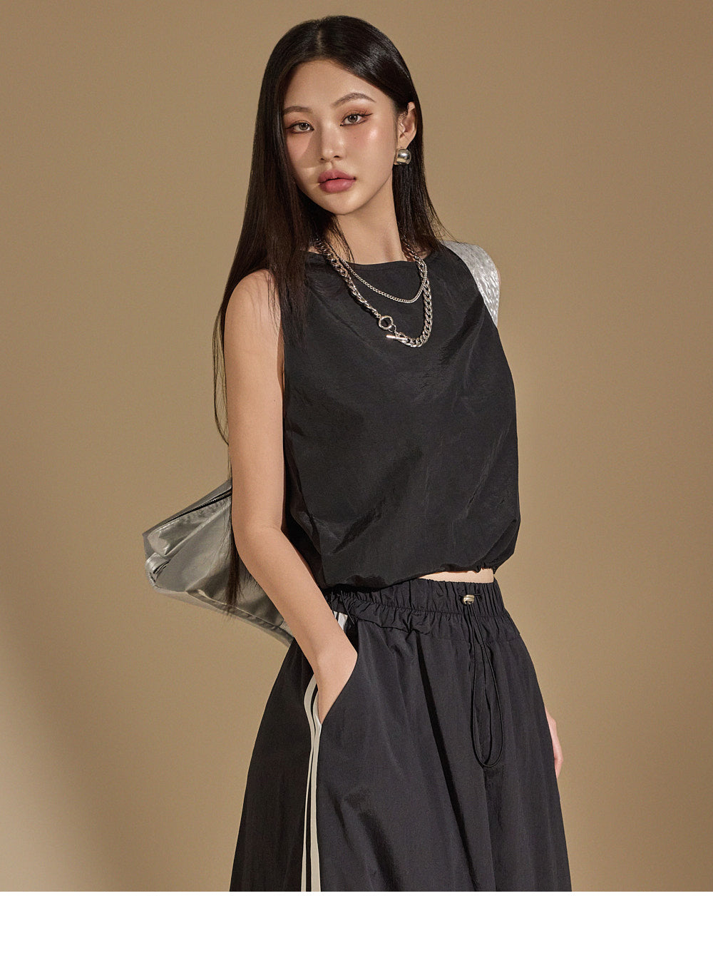 and features a bottom drawstring for versatile styling,