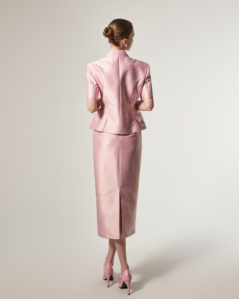 This is a jacket and skirt set with a modern vibe.